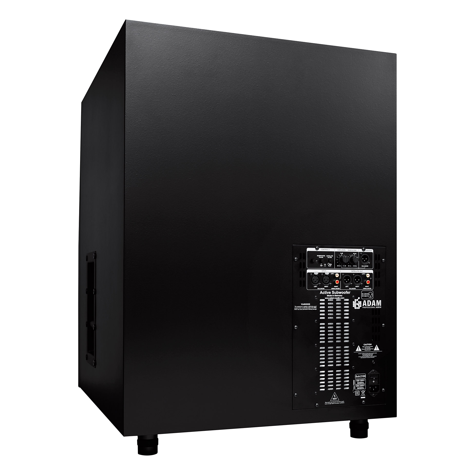 Sub2100 to unikalny subwoofer, stworzony przez firmę ADAM specjalnie pod kątem wymagań dużych reżyserek i studiów. Sub2100 wyposażono w ogromny 21-calowy woofer i wzmacniacz, który potrafi dostarczyć moc na stałym poziomie 1000 W.