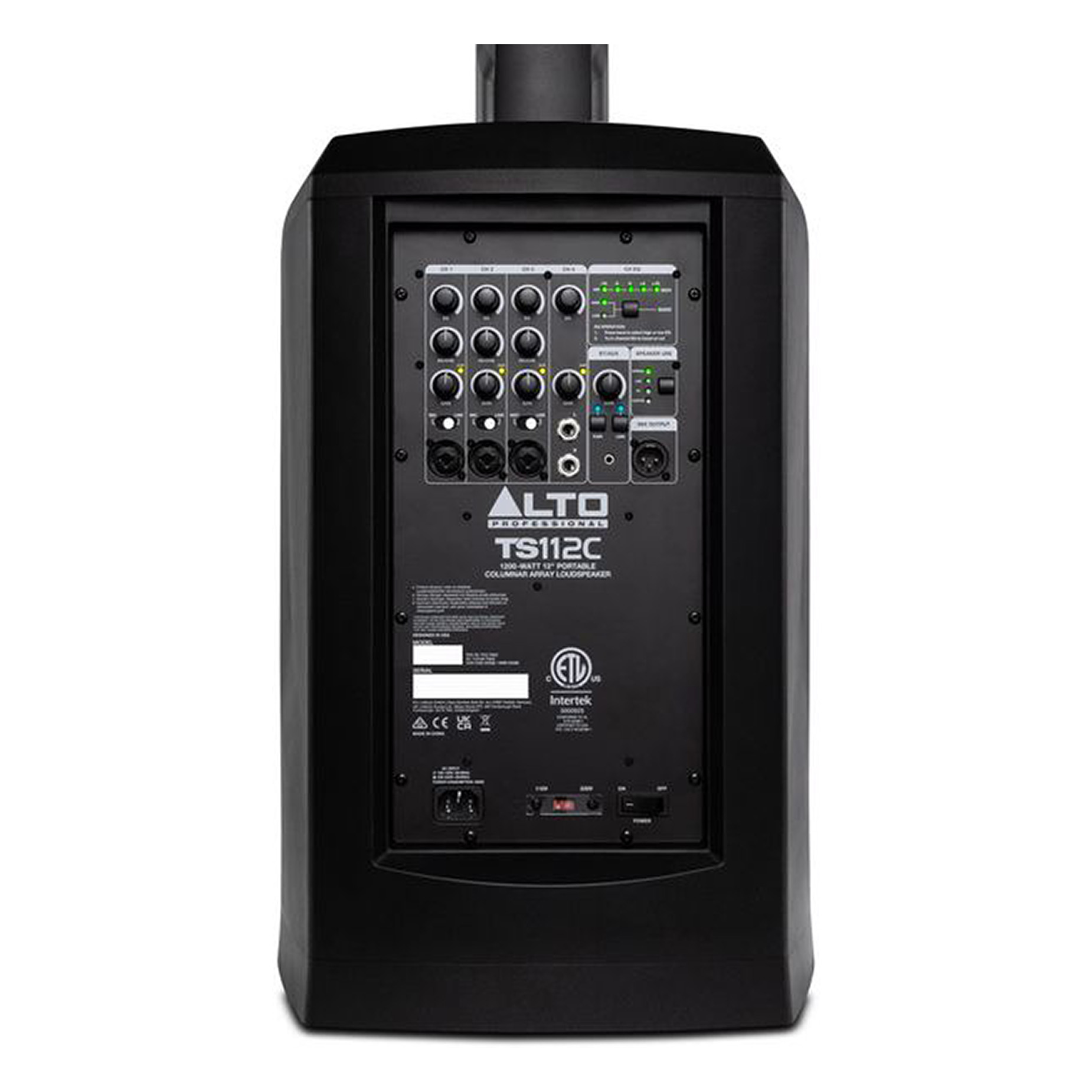 Alto TS112C – przenośny głośnik kolumnowy PA 1200 W z DSP, 12" subwooferem, mikserem 5-kanałowym i streamingiem Bluetooth.