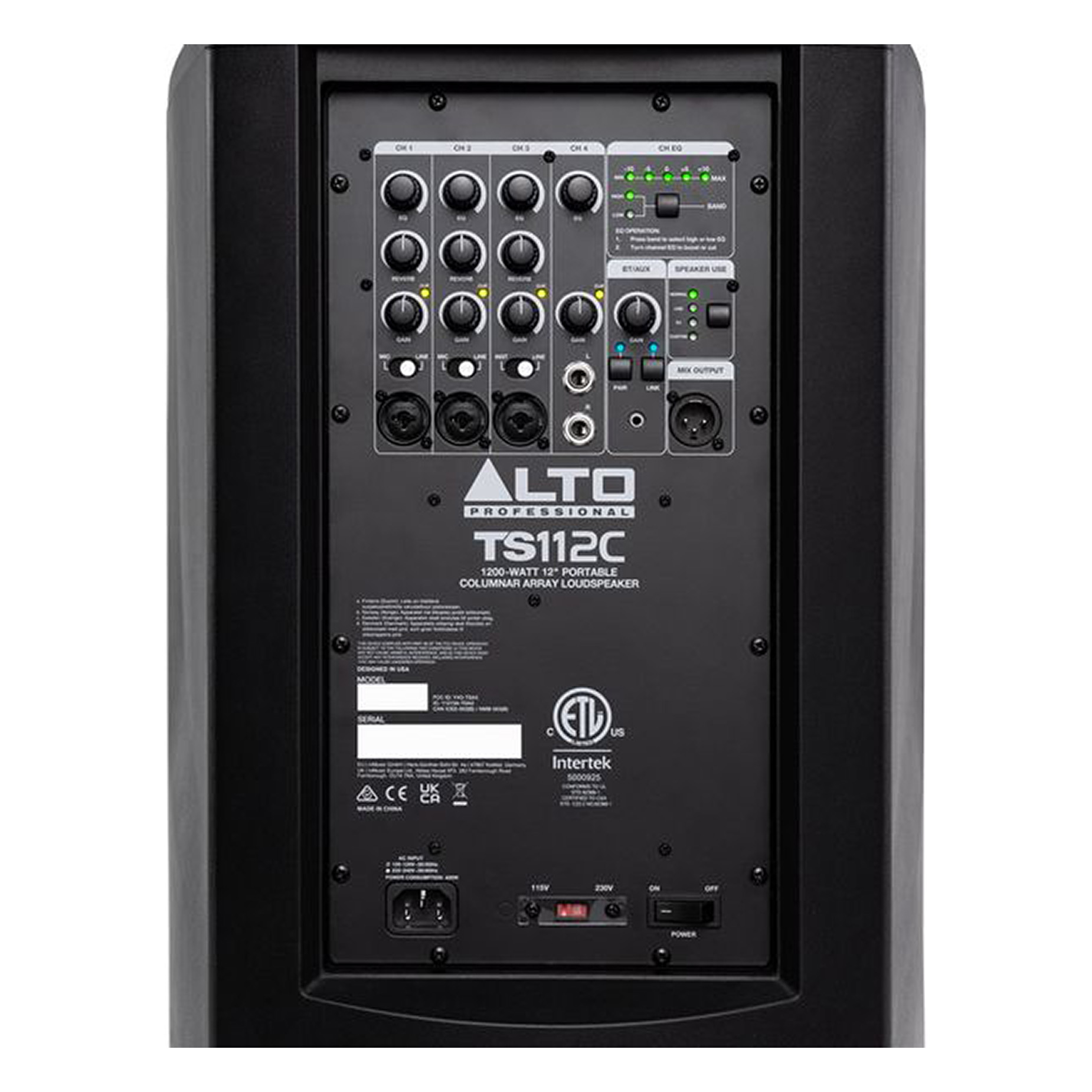 Alto Pro TS112C to wydajny, wielofunkcyjny głośnik kolumnowy PA, zaprojektowany tak, aby dostarczać wysokiej jakości dźwięk wypełniający pomieszczenie, a jednocześnie pozostawać łatwy w transporcie i obsłudze. Idealny dla muzyków na żywo, DJ-ów, instruktorów fitness, restauracji i sal konferencyjnych.
