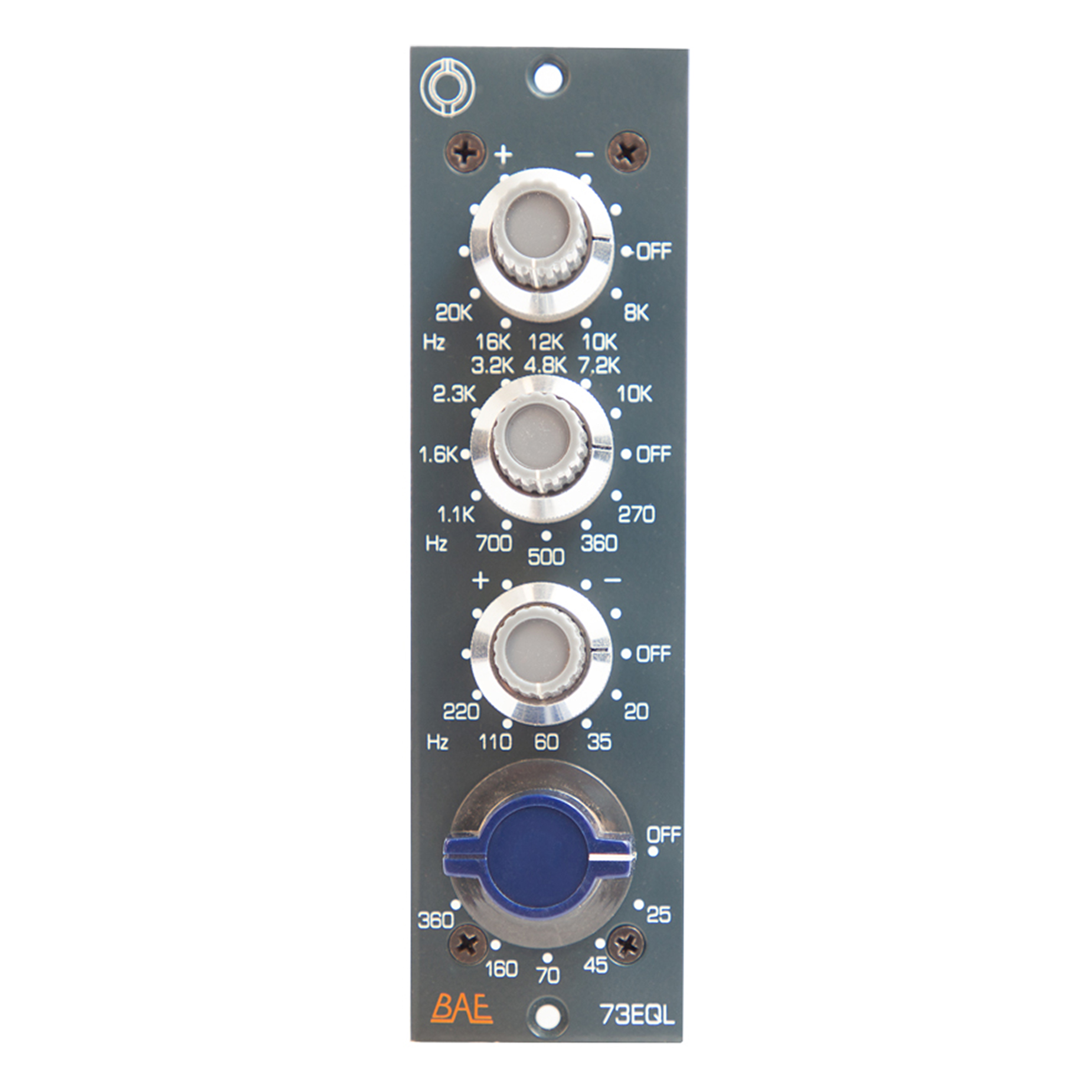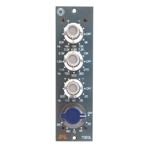 BAE 73EQL to pasywny equalizer 3-pasmowy w formacie 500 Series, zaprojektowany z myślą o uzyskaniu charakterystycznego brzmienia klasycznego equalizera 1073. Wykorzystuje te same komponenty, takie jak transformatory Carnhill/St Ives i induktory, co jego starszy brat, co zapewnia autentyczne, ciepłe i muzykalne brzmienie.
