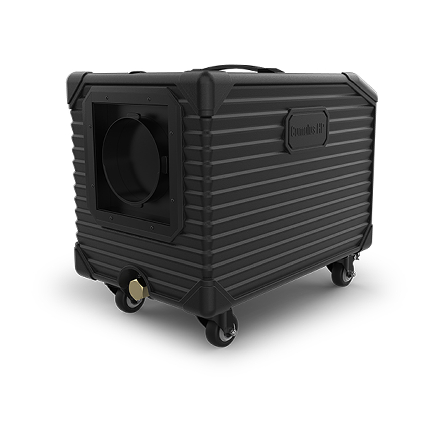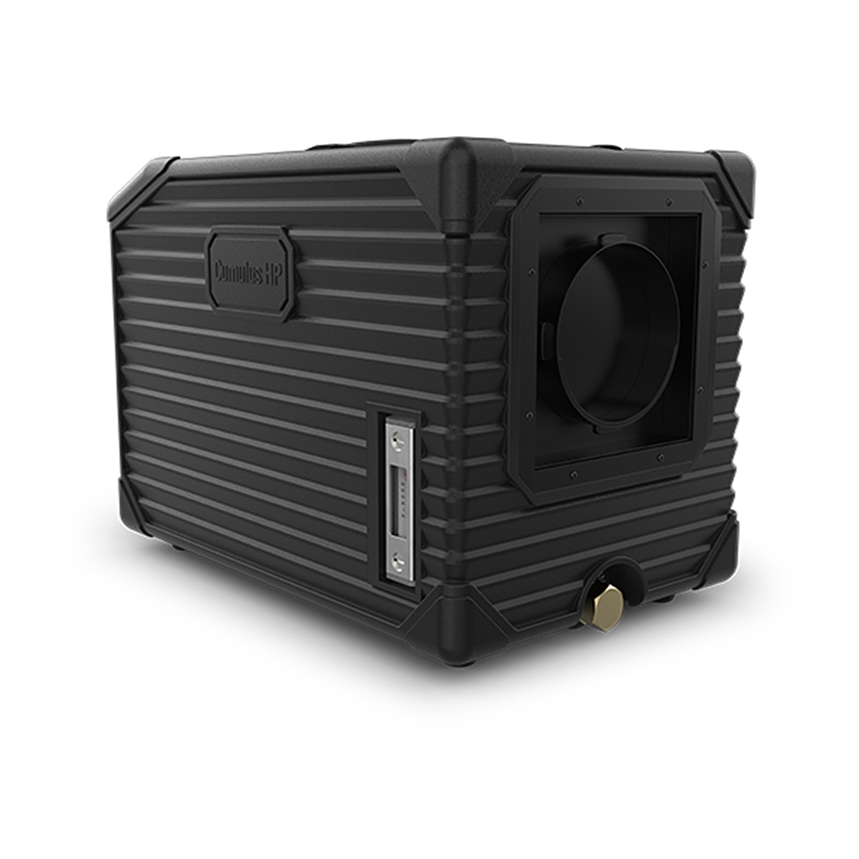 Cumulus HP wytwarza gęste chmury przylegające do podłogi, które tworzą spektakularny efekt specjalny – bez konieczności używania suchego lodu. Wbudowany ultradźwiękowy atomizer zamienia wodę destylowaną w delikatną mgiełkę, a krótki czas nagrzewania (ok. 2 min) umożliwia szybkie rozpoczęcie pracy.