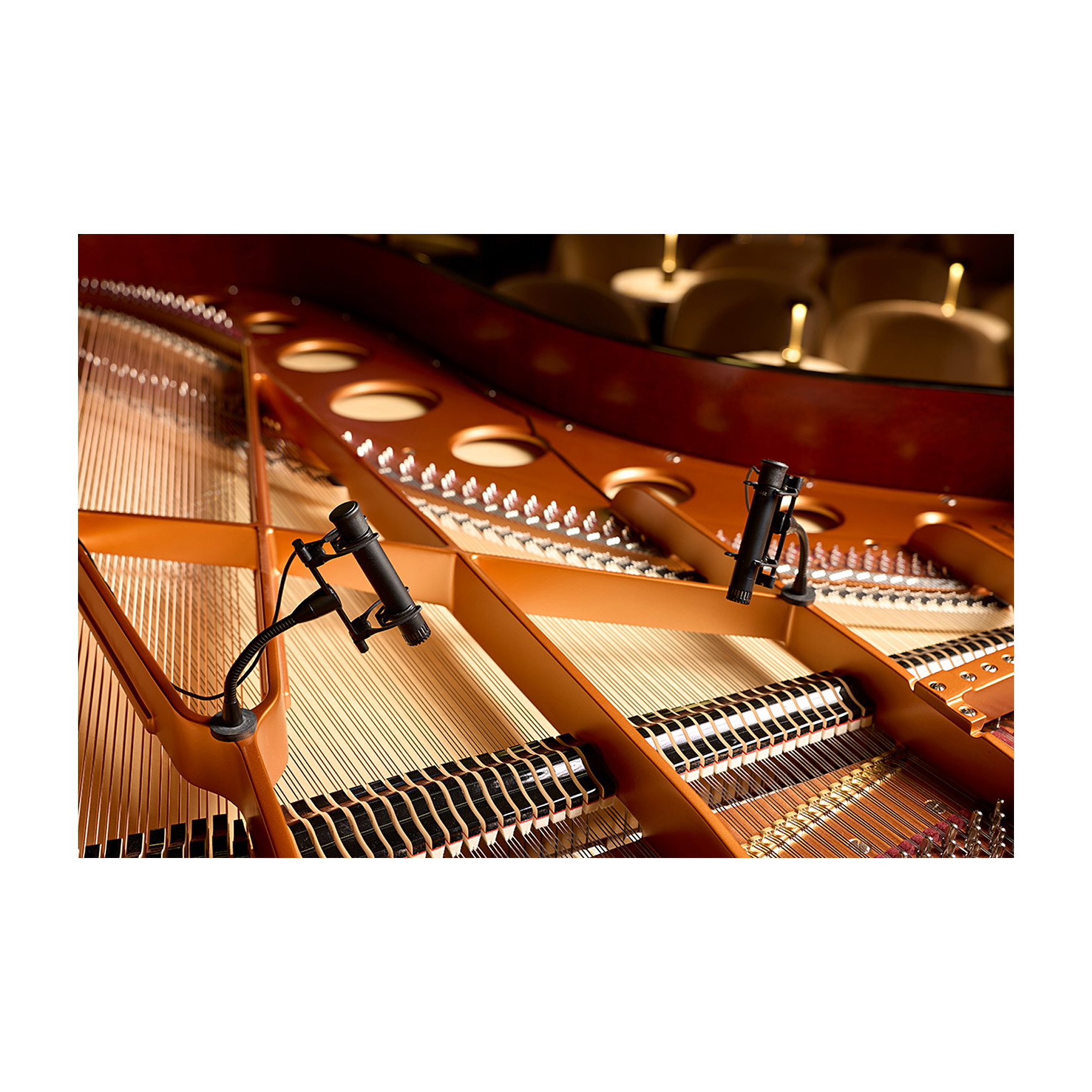 Szeroka charakterystyka kardioidalna pozwala uchwycić większy obszar instrumentu w spójny i kontrolowany sposób, co przekłada się na pełne, zbalansowane brzmienie fortepianu przy jednoczesnym zachowaniu doskonałej separacji.