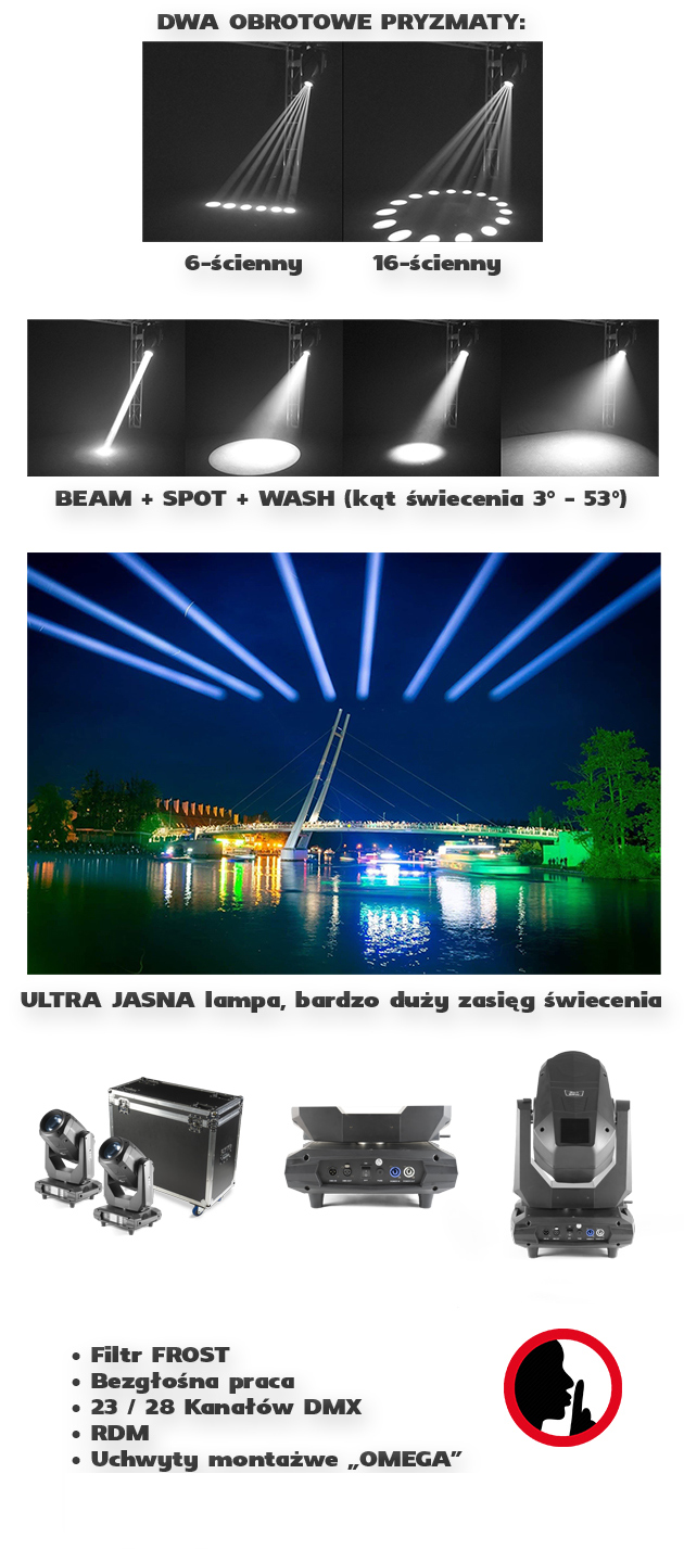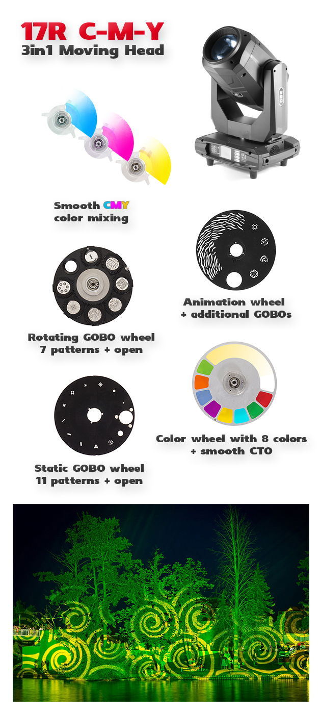 Specyfikacja techniczna Flash Professional 2x Moving Head 17R CMY 3in1 Beam-Spot-Wash (SET) ver III