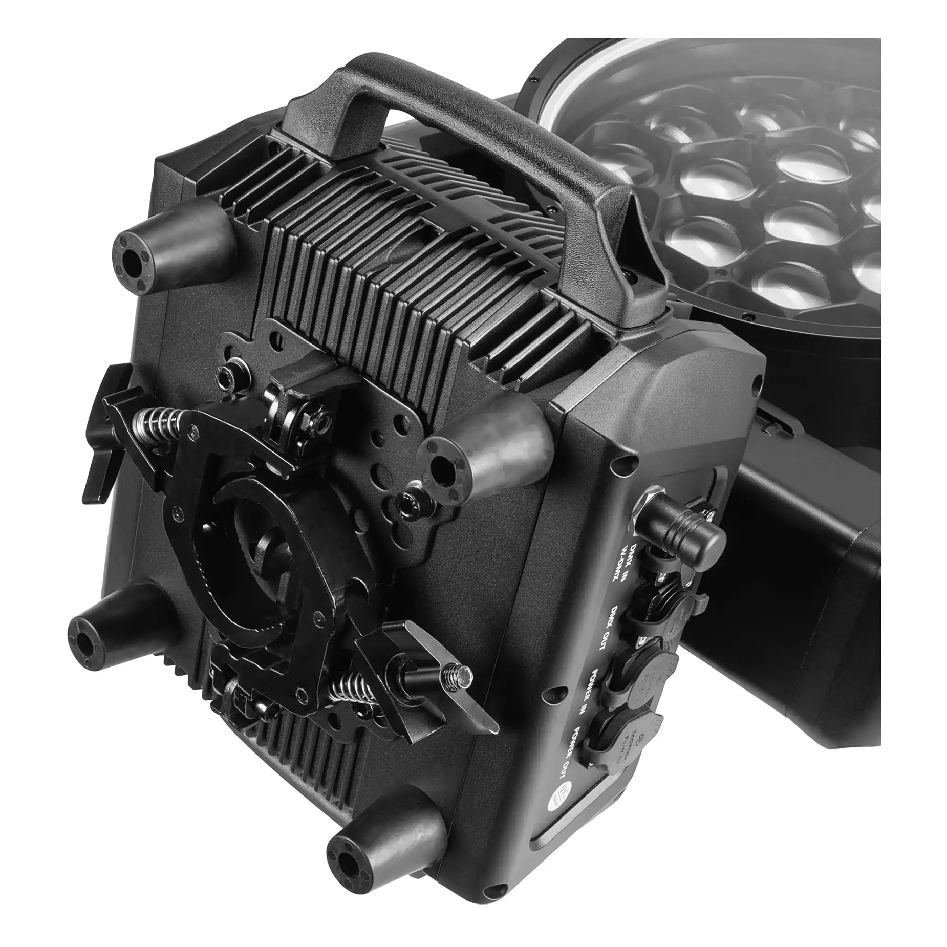 Dzięki rotacji soczewek w całym zakresie zoom urządzenie oferuje szerokie możliwości kreacyjne – od precyzyjnego, wąskiego beamu po szeroki wash. Mechanizm zoomu zamknięty wewnątrz obudowy znacząco obniża ryzyko awarii w porównaniu z konkurencyjnymi rozwiązaniami.