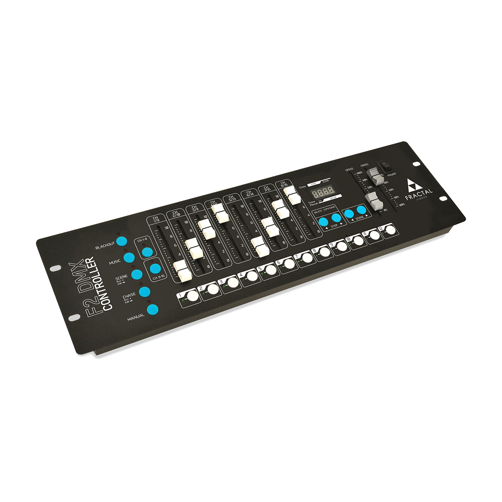 Fractal Lights F2 DMX – prosty i wytrzymały sterownik oświetlenia dla klubów i DJ-ów. Kontrola 192 kanałów DMX, automatyczne sceny, solidna konstrukcja.