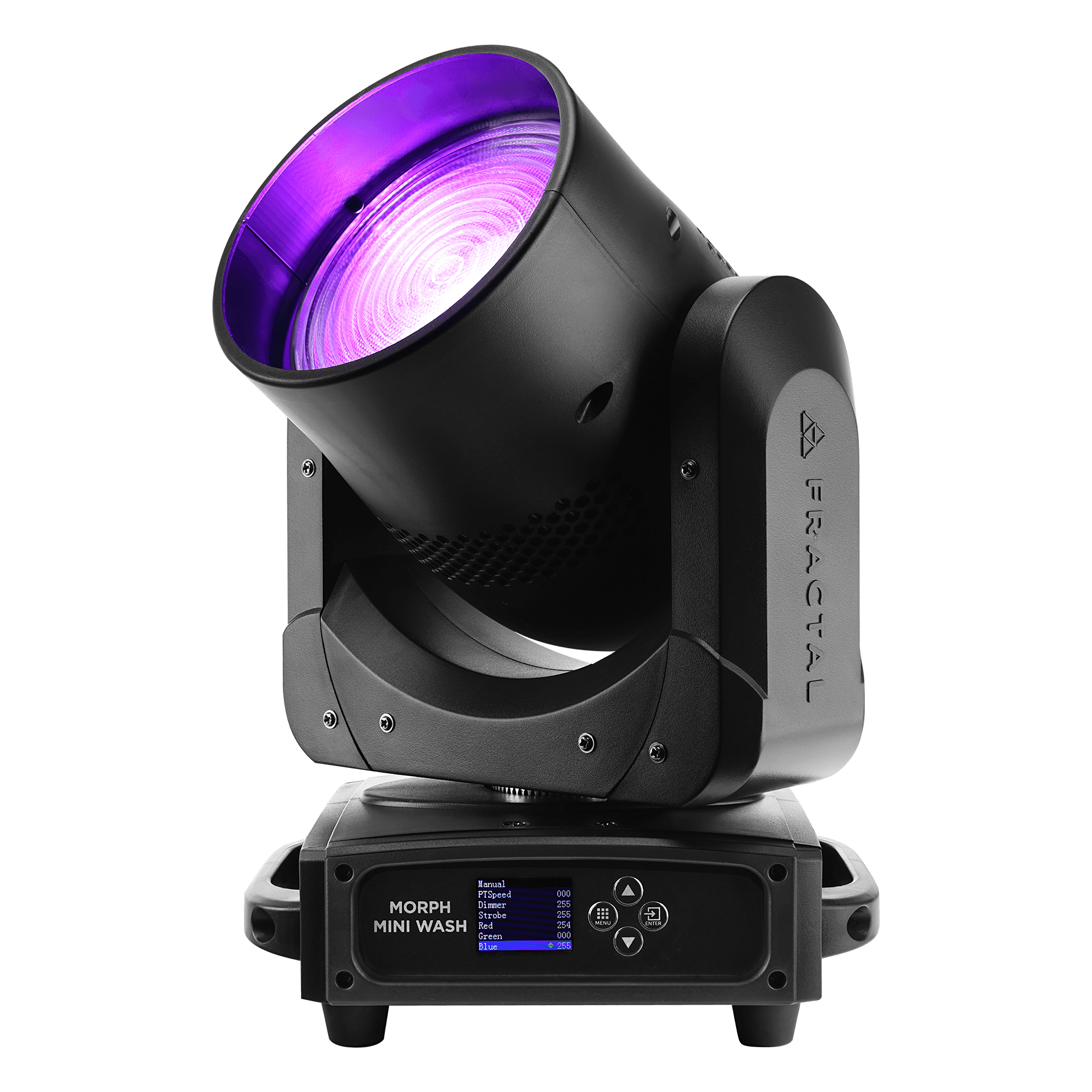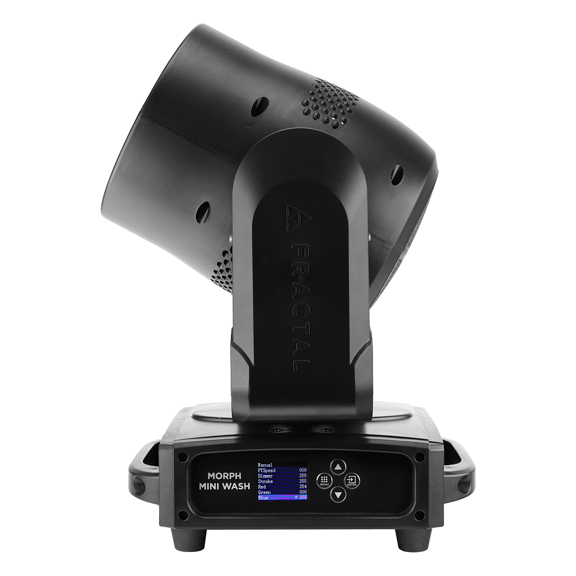 Fractal Morph MINI PIX WASH to głowa LED/Wash, która łączy nowoczesną technologię z klasycznym teatralnym charakterem. Dzięki soczewce Fresnela oferuje równomierną plamę światła, nawiązując stylistycznie do starych reflektorów teatralnych.