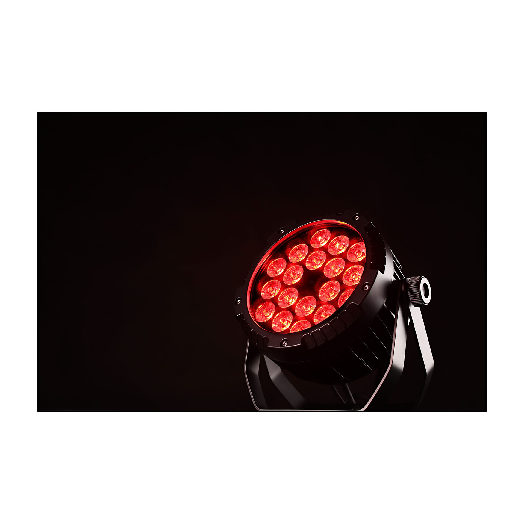 Par wyposażony został w 18 diod LED 5w1 o mocy 18W każda, oferujących kolory RGBWA+UV. Dzięki temu uzyskasz intensywne światło, szerokie możliwości miksowania barw oraz dodatkowe efekty UV, które wzbogacają dekoracyjne aranżacje.
