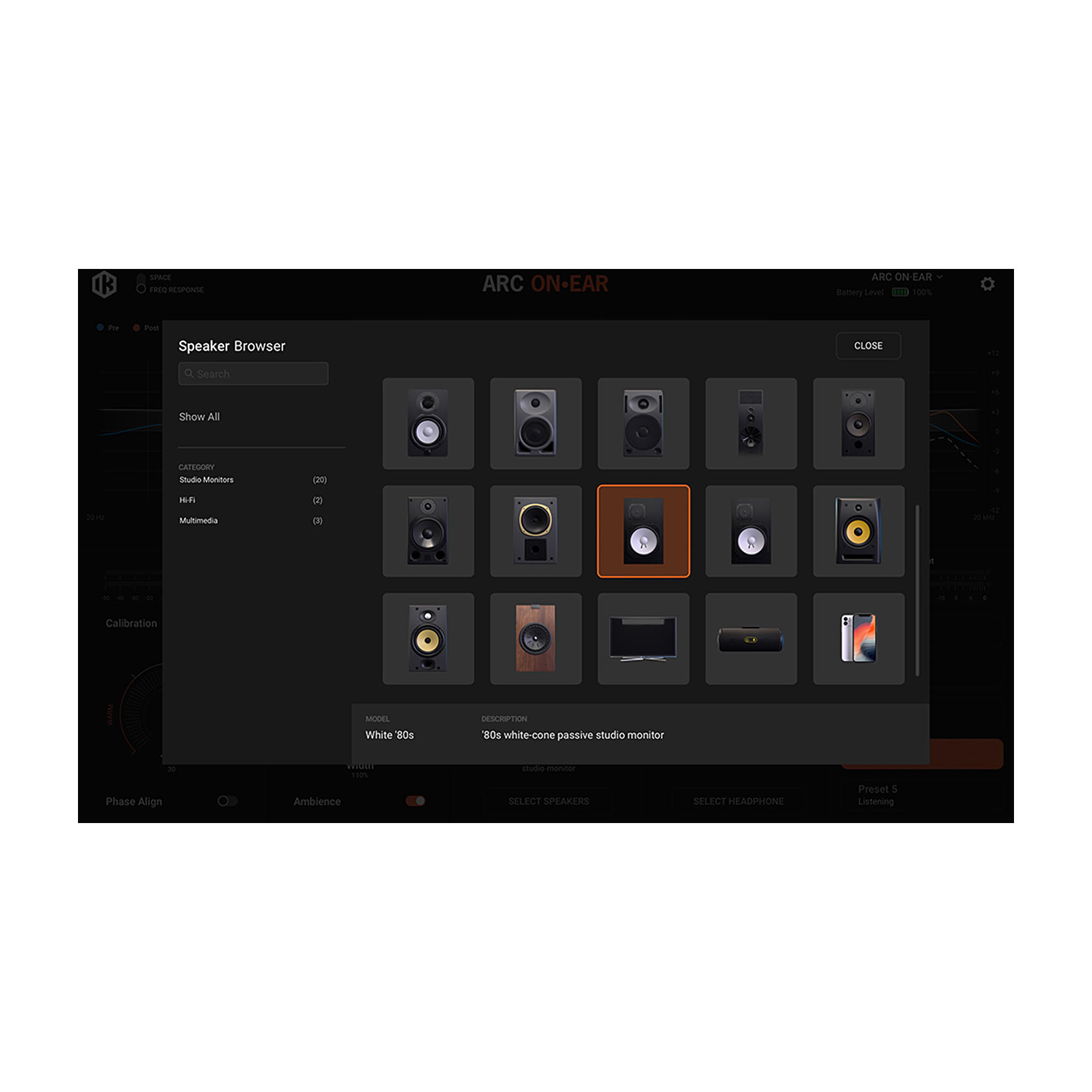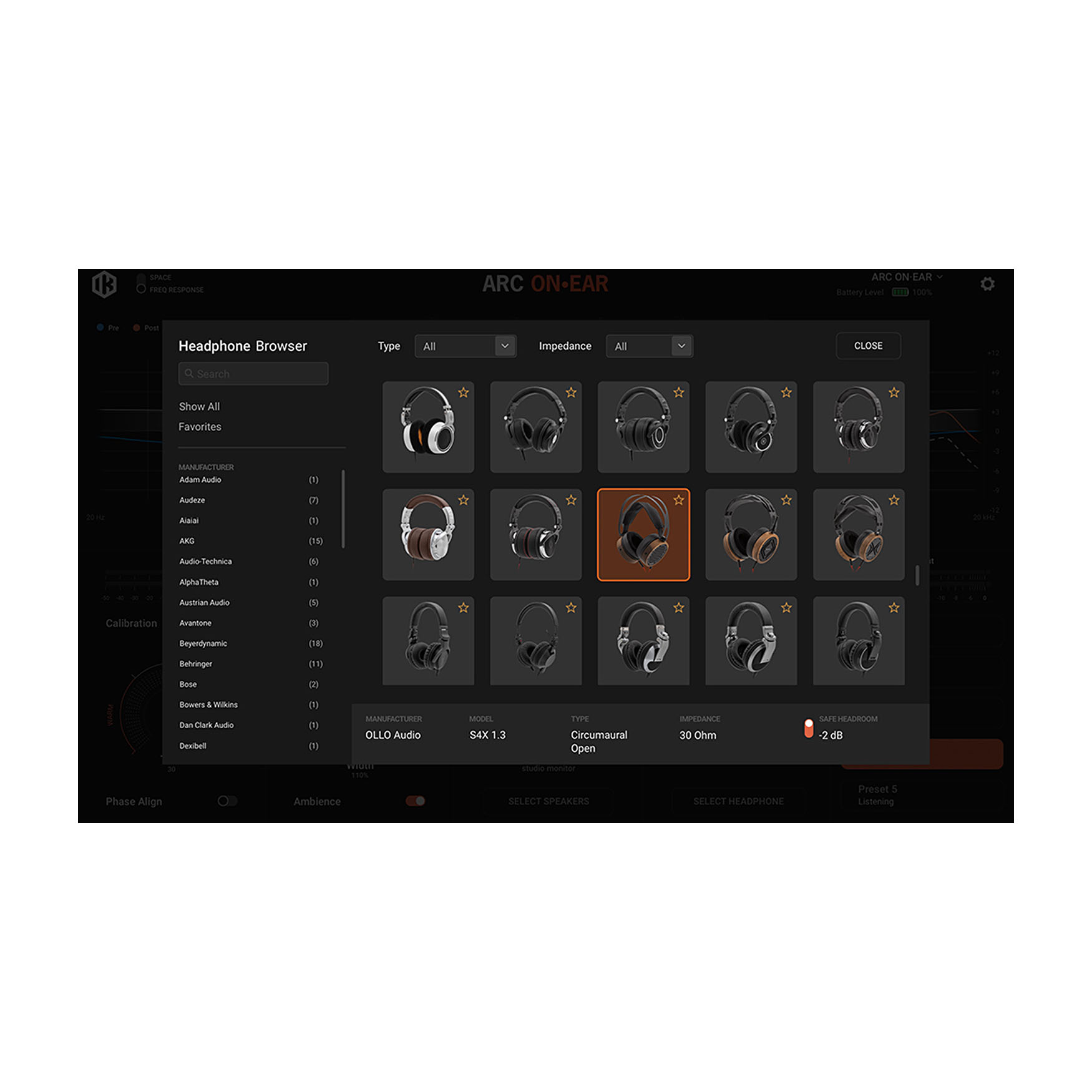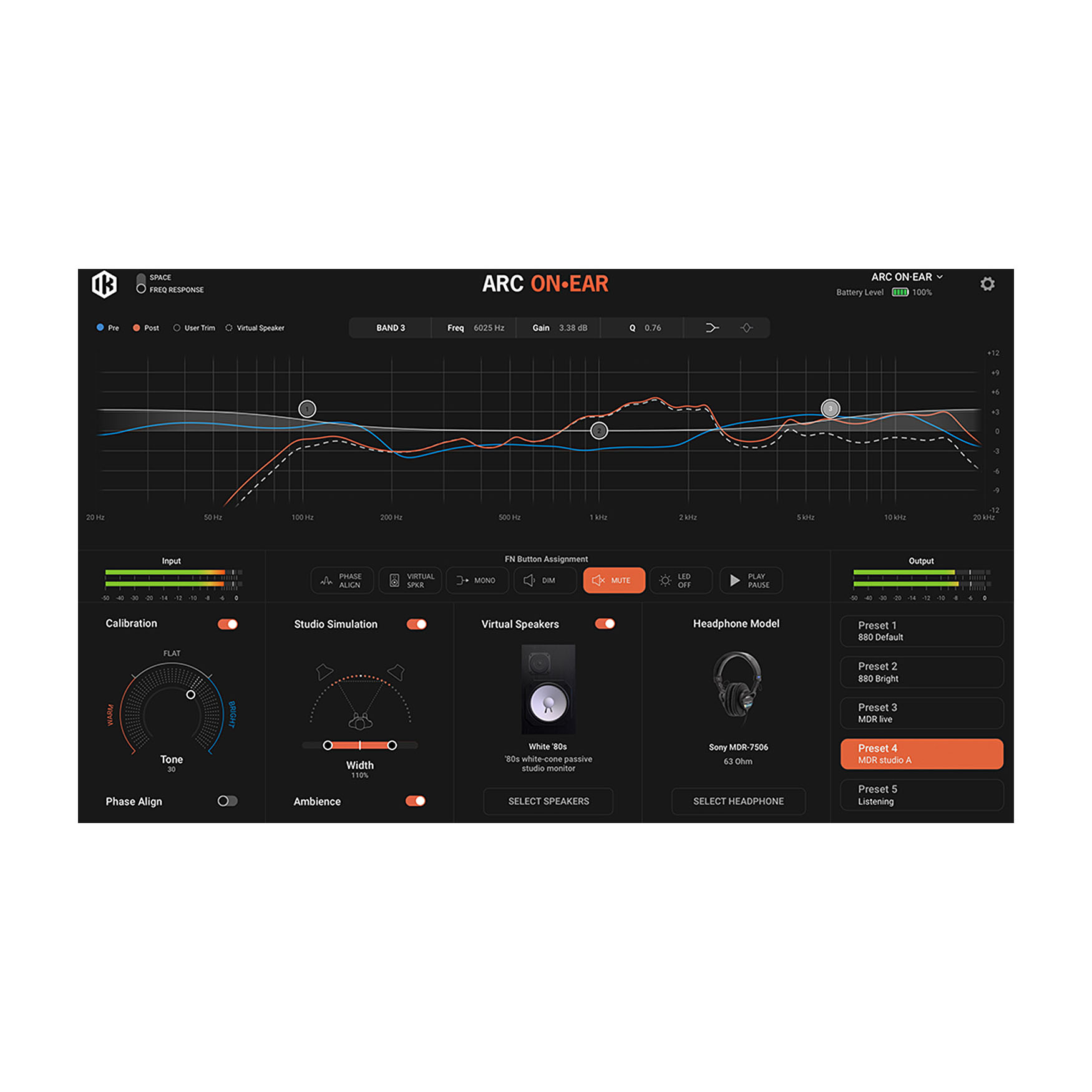 Każda para słuchawek ma swój dźwiękowy odcisk palca. ARC ON•EAR wykorzystuje precyzyjne profile kalibracji, mierzone za pomocą referencyjnych urządzeń, aby zapewnić dokładny, transparentny i niezawodny dźwięk. Dzięki obsłudze setek modeli słuchawek Twój miks będzie brzmiał dokładnie tak, jak powinien – czysto, realistycznie i zrównoważenie.
