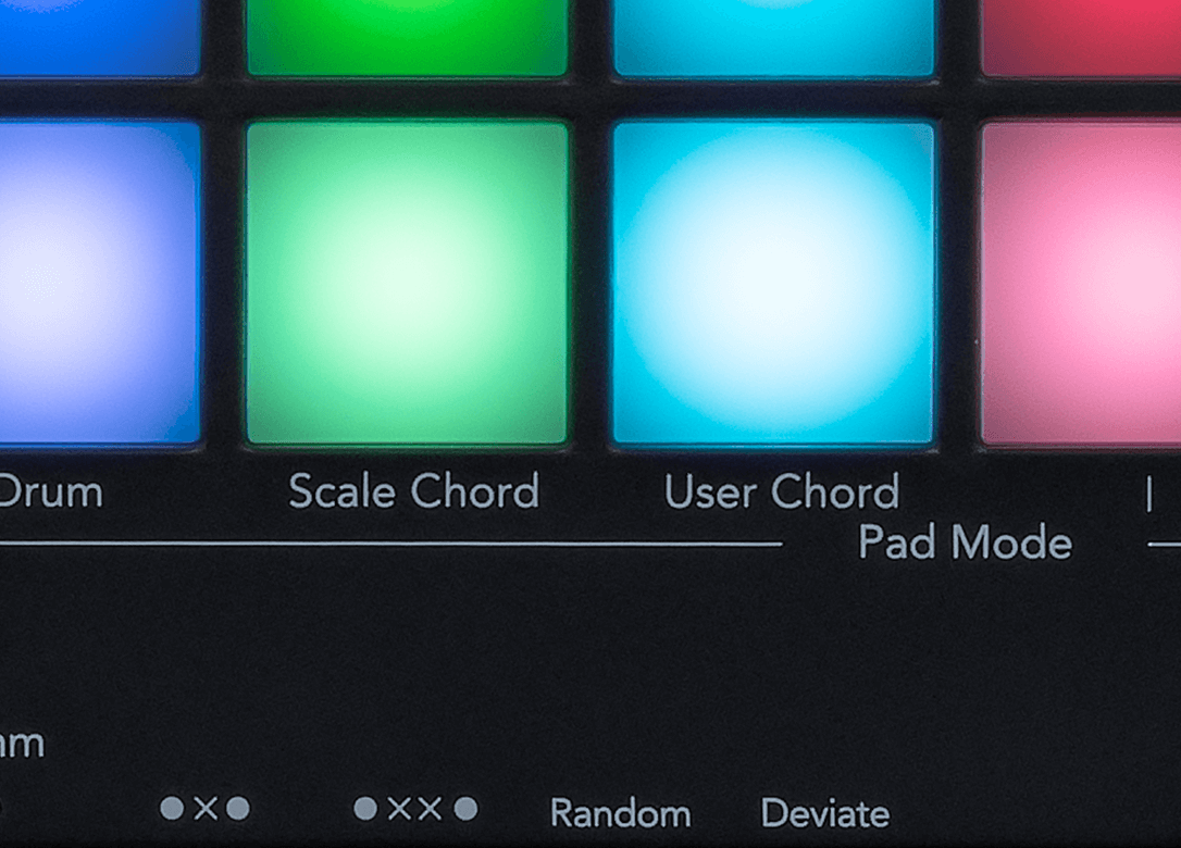 - 16 Podświetlanych padów RGB wrażliwych na siłę nacisku