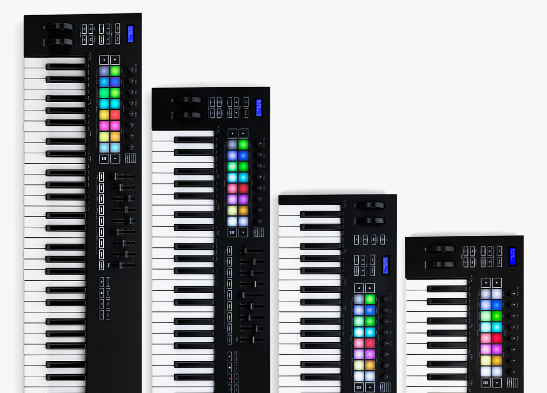 Dzięki dostępności w wersjach 25-, 37-, 49- i 61-klawiszowych, łatwiej niż kiedykolwiek wybrać odpowiedni rozmiar dla siebie. Modele 25- i 37-klawiszowe są idealne dla mobilnych producentów i wykonawców, a także dla osób w małych pomieszczeniach. Wersje 49- i 61-klawiszowe są idealne do większych konfiguracji, a także dla tych, którzy chcą mieć więcej klawiszy i większą kontrolę ręczną za pomocą faderów i przycisków.