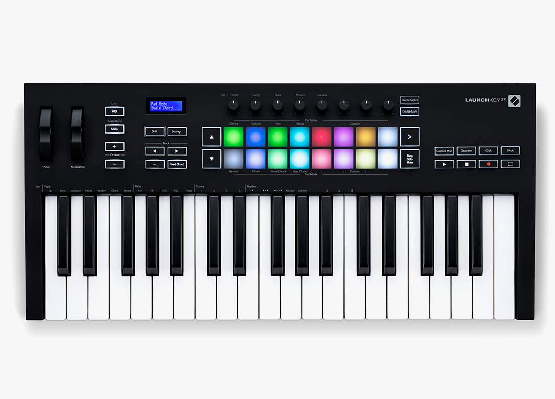 Novation Launchkey 25 Mk3 działa samodzielnie, więc jest to idealny kontroler do tworzenia muzyki, z komputerem lub bez niego. Skala i tryby akordowe, arpeggiator i tryby niestandardowe mogą być używane do sterowania wszystkimi rodzajami sprzętu w studio lub na żywo.