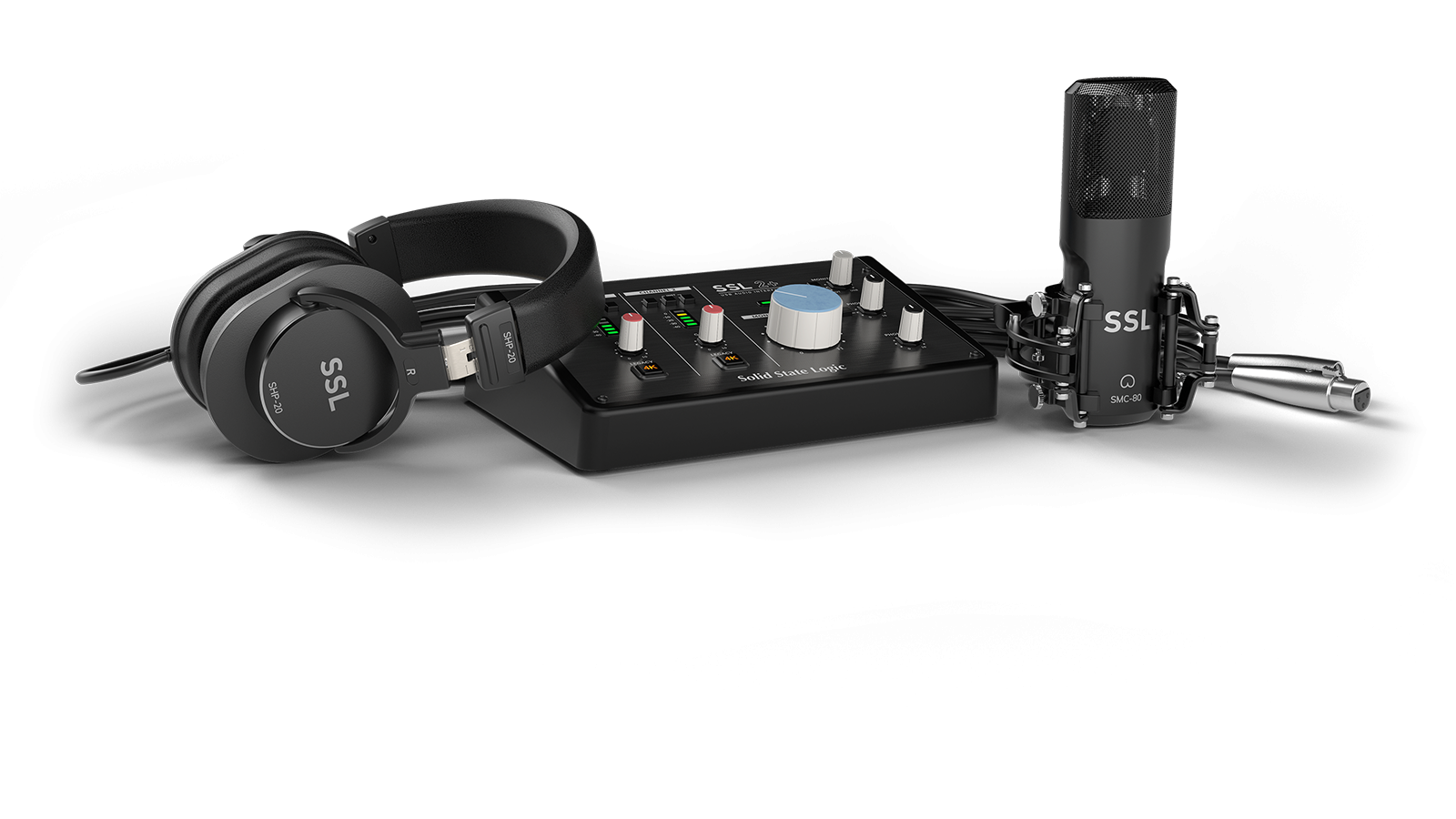 SSL Recording Pack zawiera wszystko, czego potrzebujesz, aby rozpocząć nagrywanie już teraz. Wystarczy podłączyć mikrofon SSL i słuchawki do interfejsu SSL 2+ i zacząć przekształcać swoje pomysły w nagrania.
