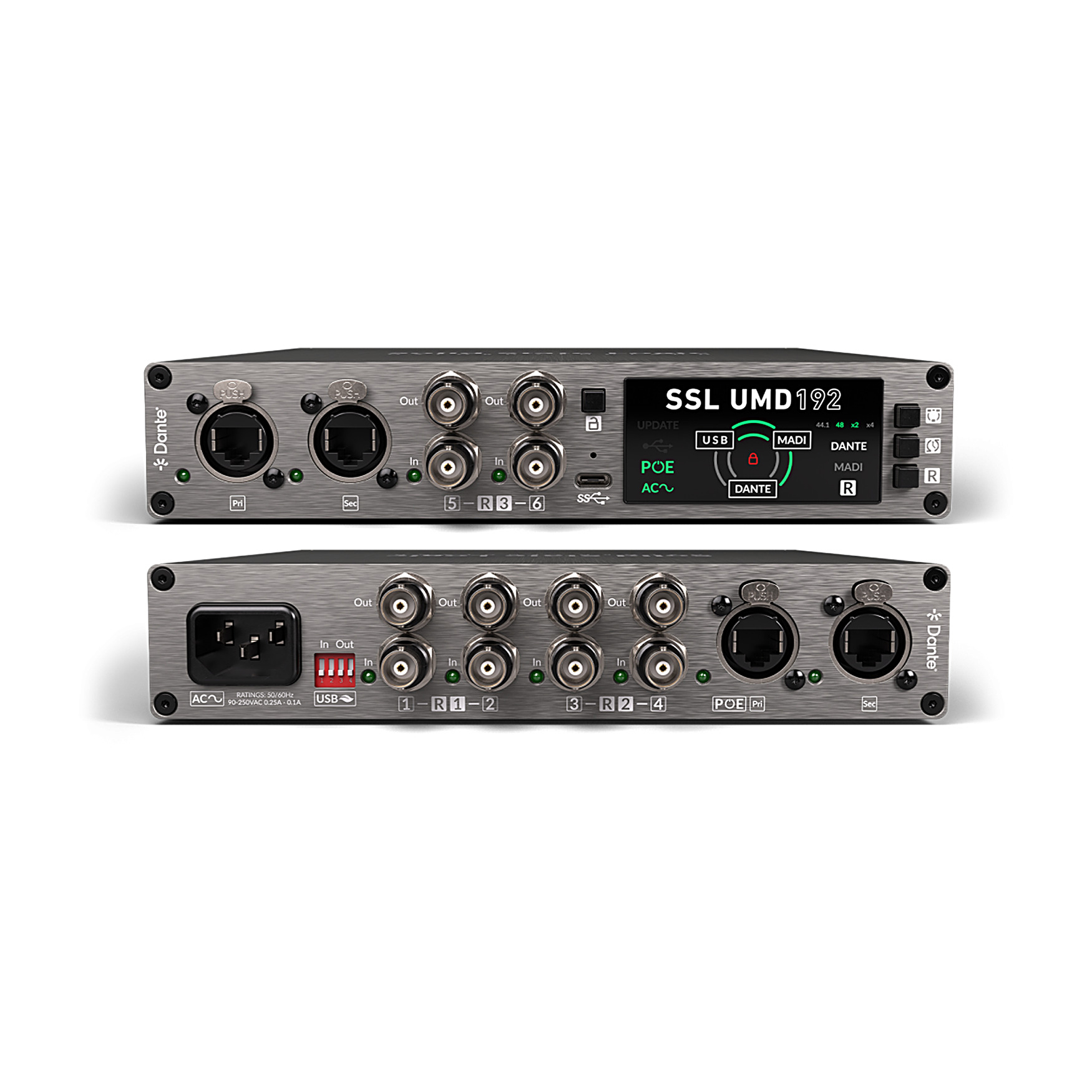 Zaprojektowany z myślą o maksymalnej wszechstronności, UMD192 obsługuje dwukierunkową transmisję audio pomiędzy dowolnymi dwoma formatami – USB, MADI lub Dante – z możliwością jednoczesnego rozdzielenia sygnału do trzeciego formatu.