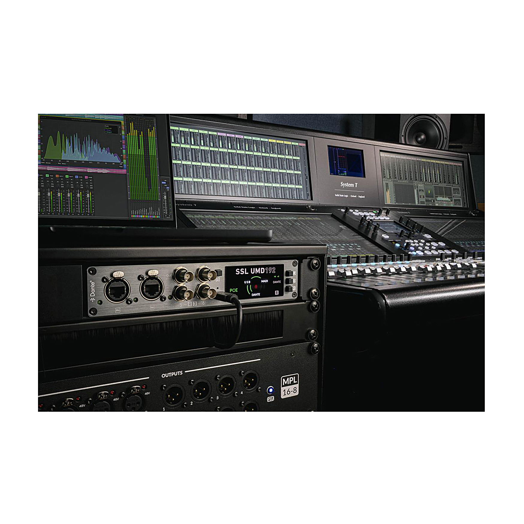 Doskonale integruje się z systemami SSL System T, konsoletami SSL Oracle i ORIGIN, a także z systemami Harrison 32Classic wyposażonymi w Dante. To idealne rozwiązanie również dla użytkowników konsol bez protokołu SSL, pracujących w środowiskach DAW.