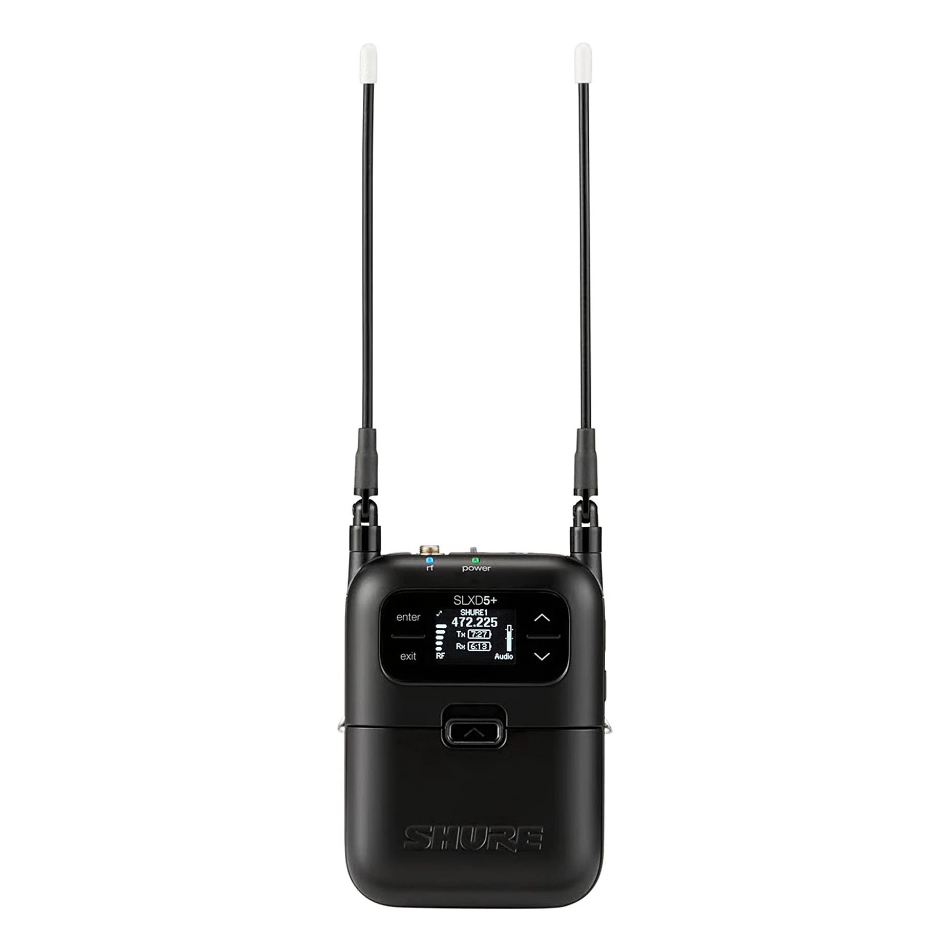 - Kompaktowy odbiornik SLXD5+ - Mały, lekki i wytrzymały, z czytelnym ekranem OLED, idealny do montażu na kamerze lub w torbie audio.
