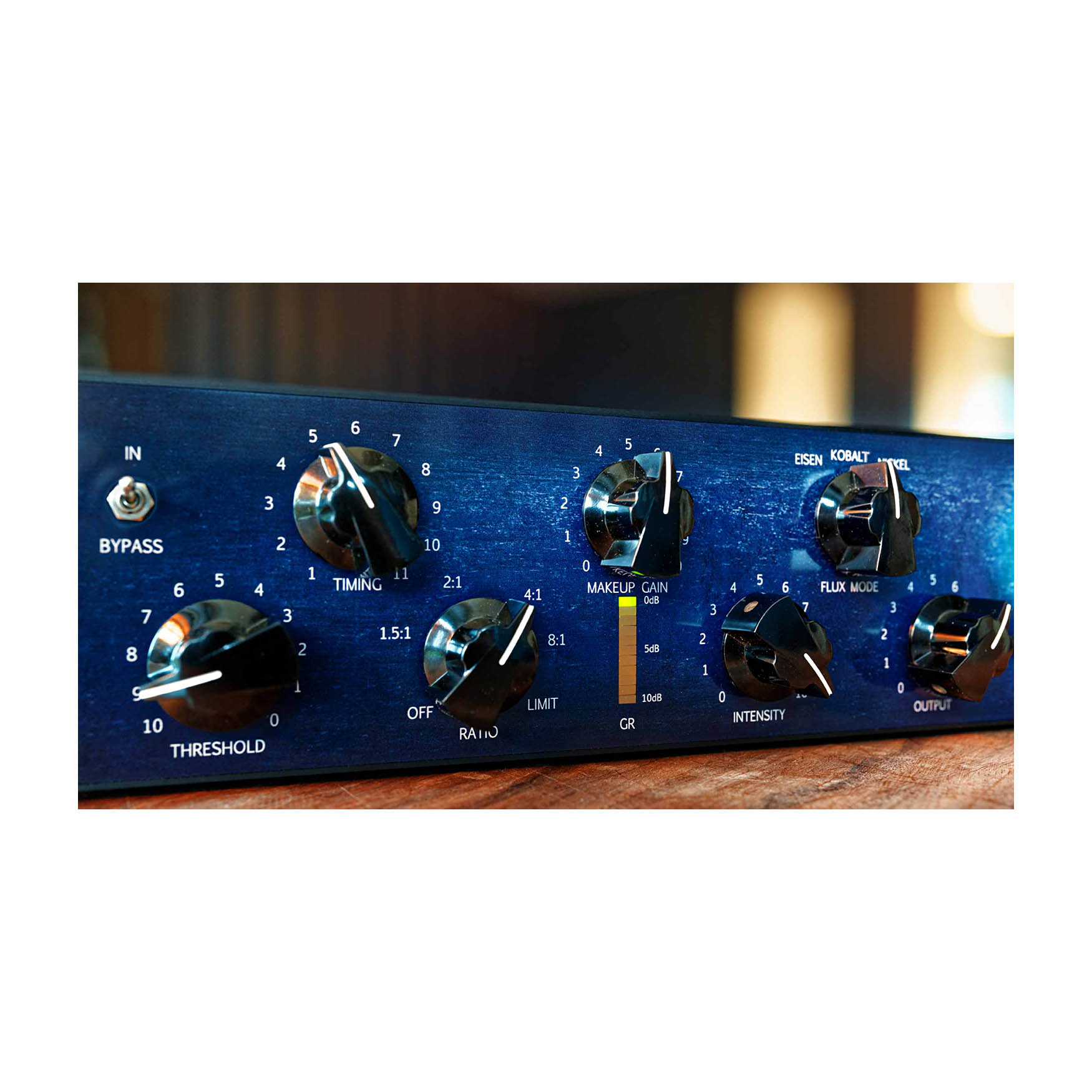 Moduł transjentów nie tylko zmienia poziom ataku, ale także zaokrągla transjenty, przypominając efekt nagrania na taśmie. Trzy tryby Flux – Eisen, Kobalt i Nickel – przepuszczają sygnał przez różne transformatory, symulując charakter nasycenia taśm wykonanych z żelaza, kobaltu i niklu.