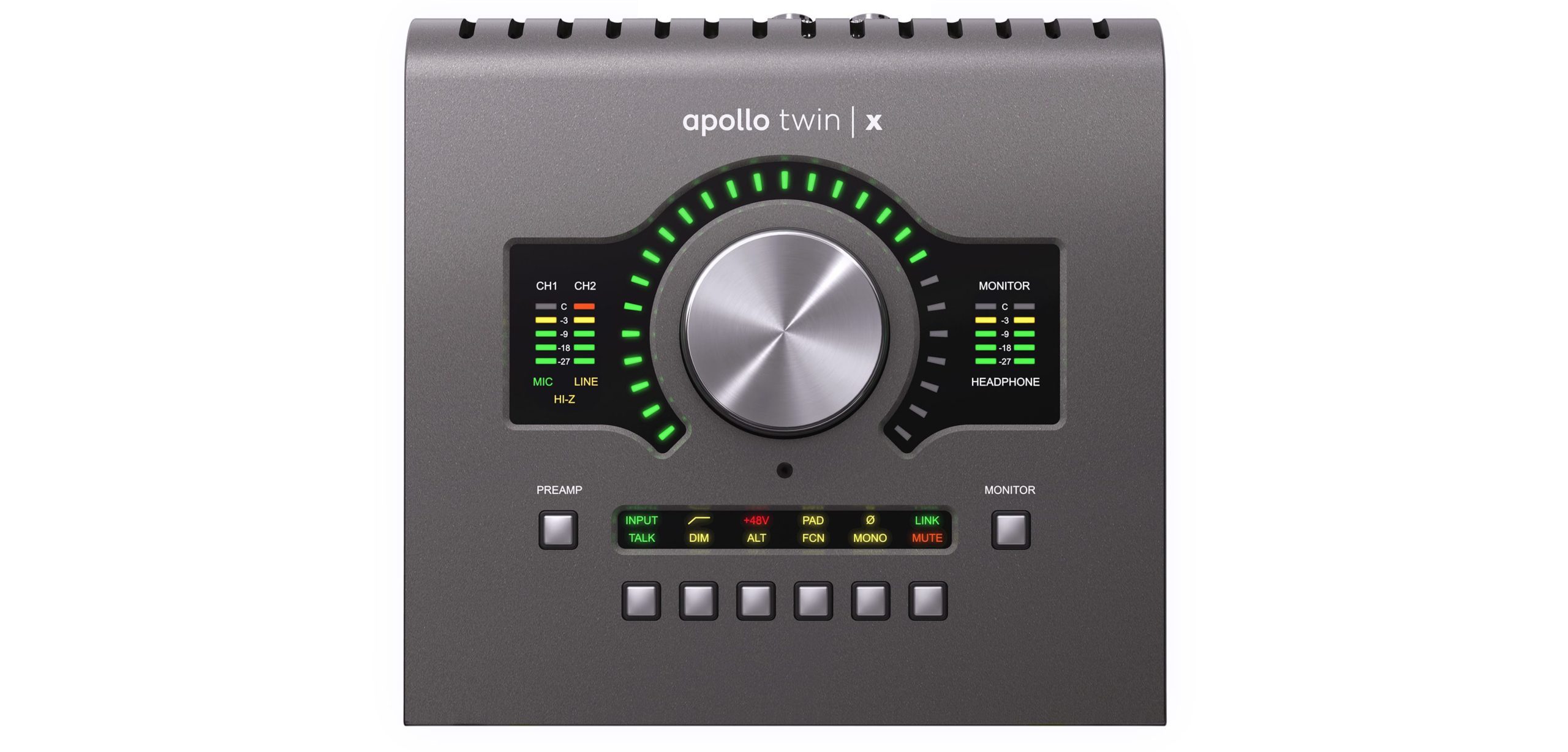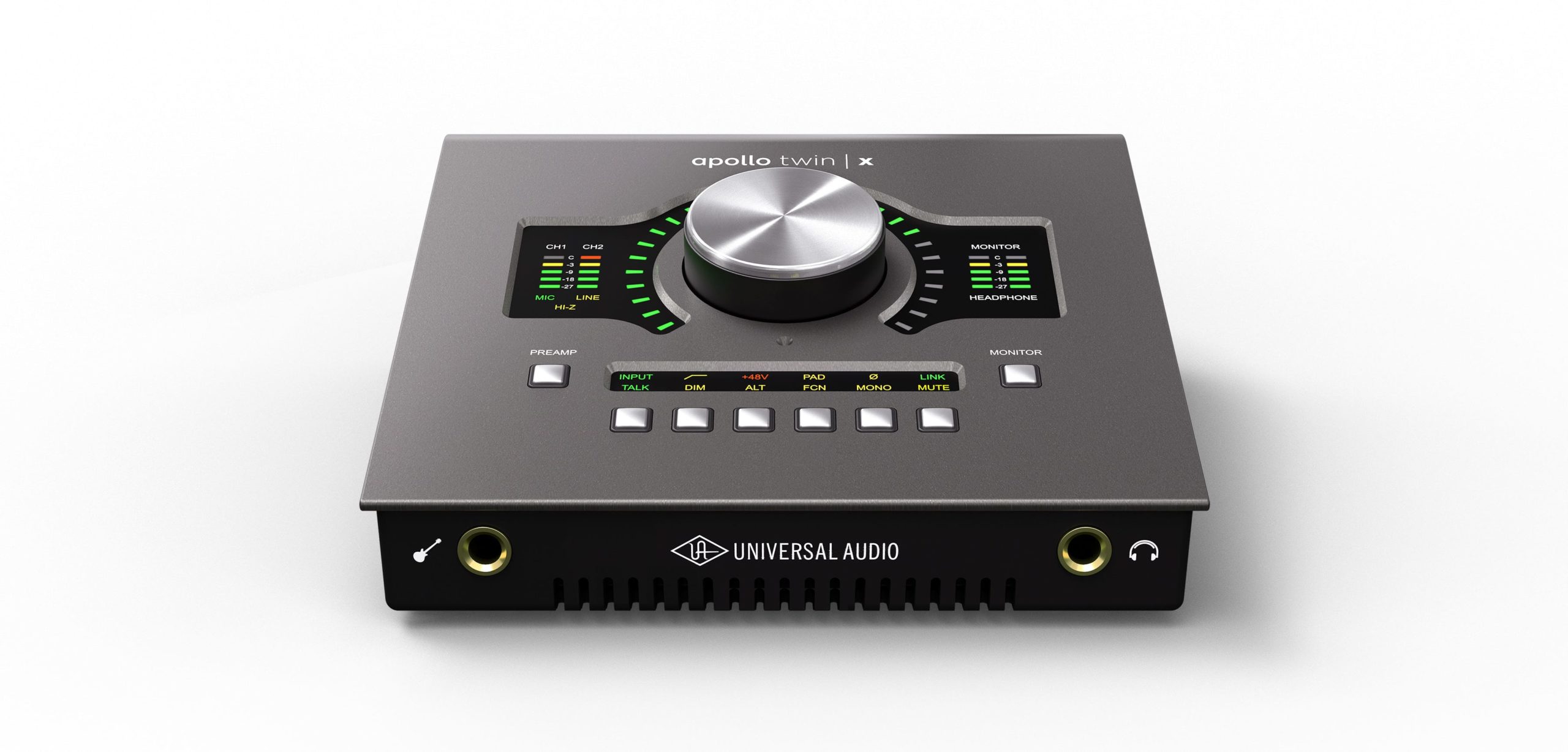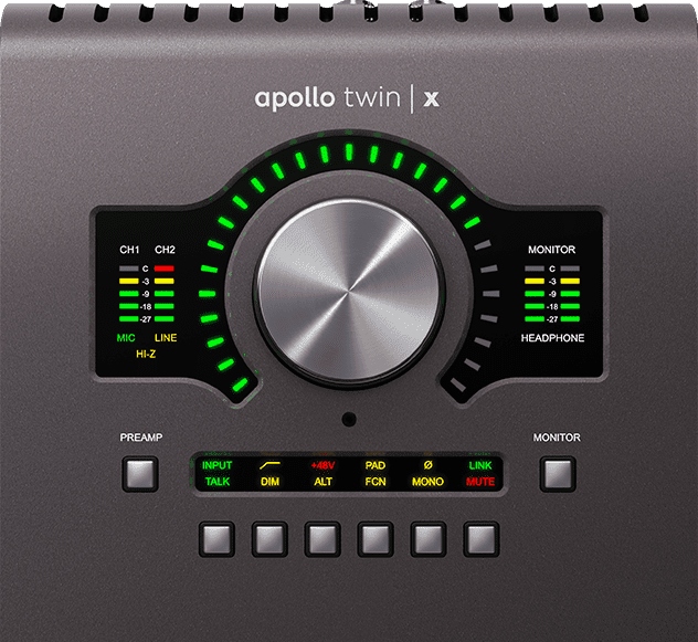 Dzięki dwóm przedwzmacniaczom Unison™ i wejściu instrumentalnemu Hi-Z na panelu przednim, Universal Audio Apollo Twin X USB Heritage Edition umożliwia śledzenie w czasie rzeczywistym za pomocą przedwzmacniaczy i wtyczek channel strip od Neve, Manley, API i dziesiątek innych, zapewniając tę samą bogatą analogową teksturę, co sprzęt używany przez dziesięciolecia kultowej muzyki.