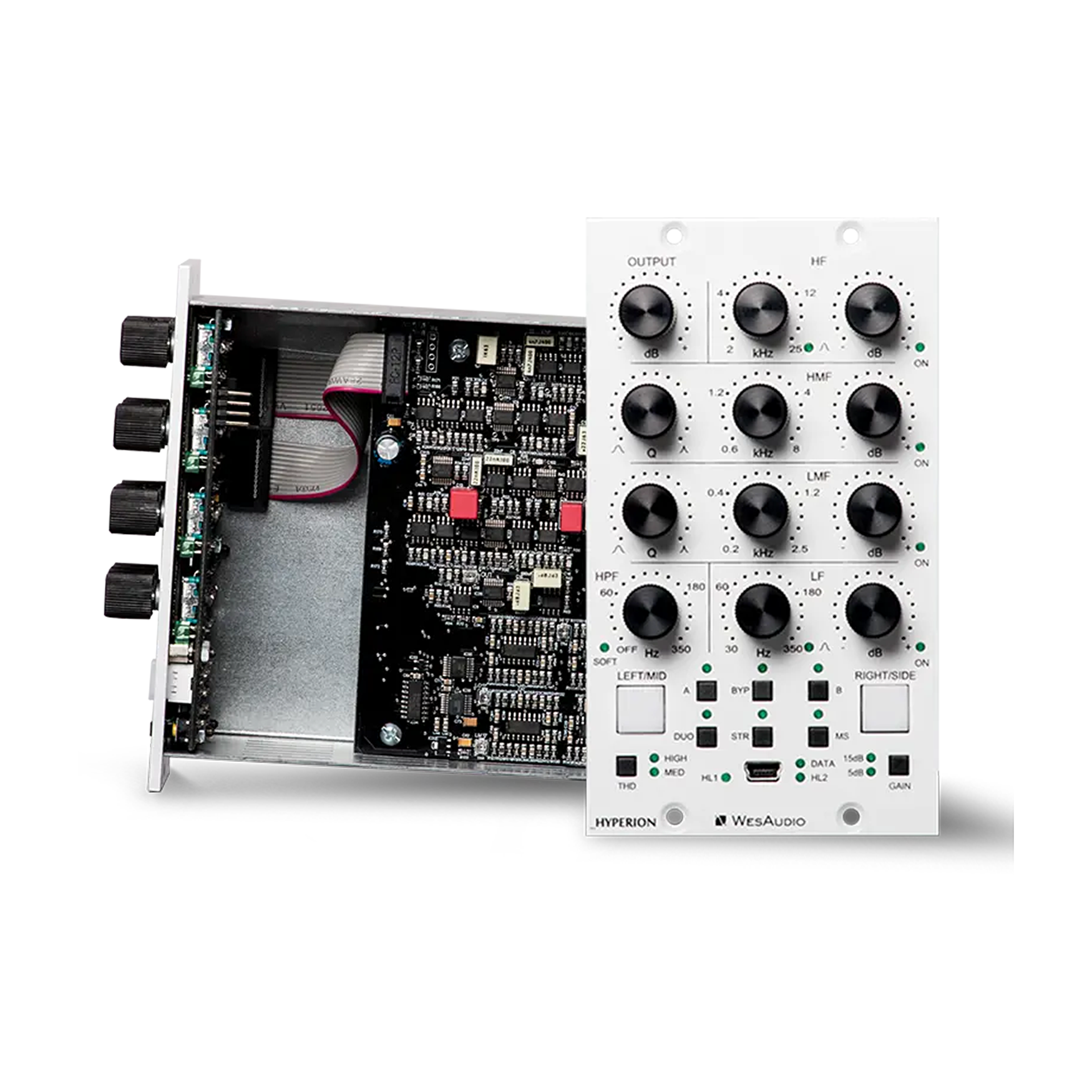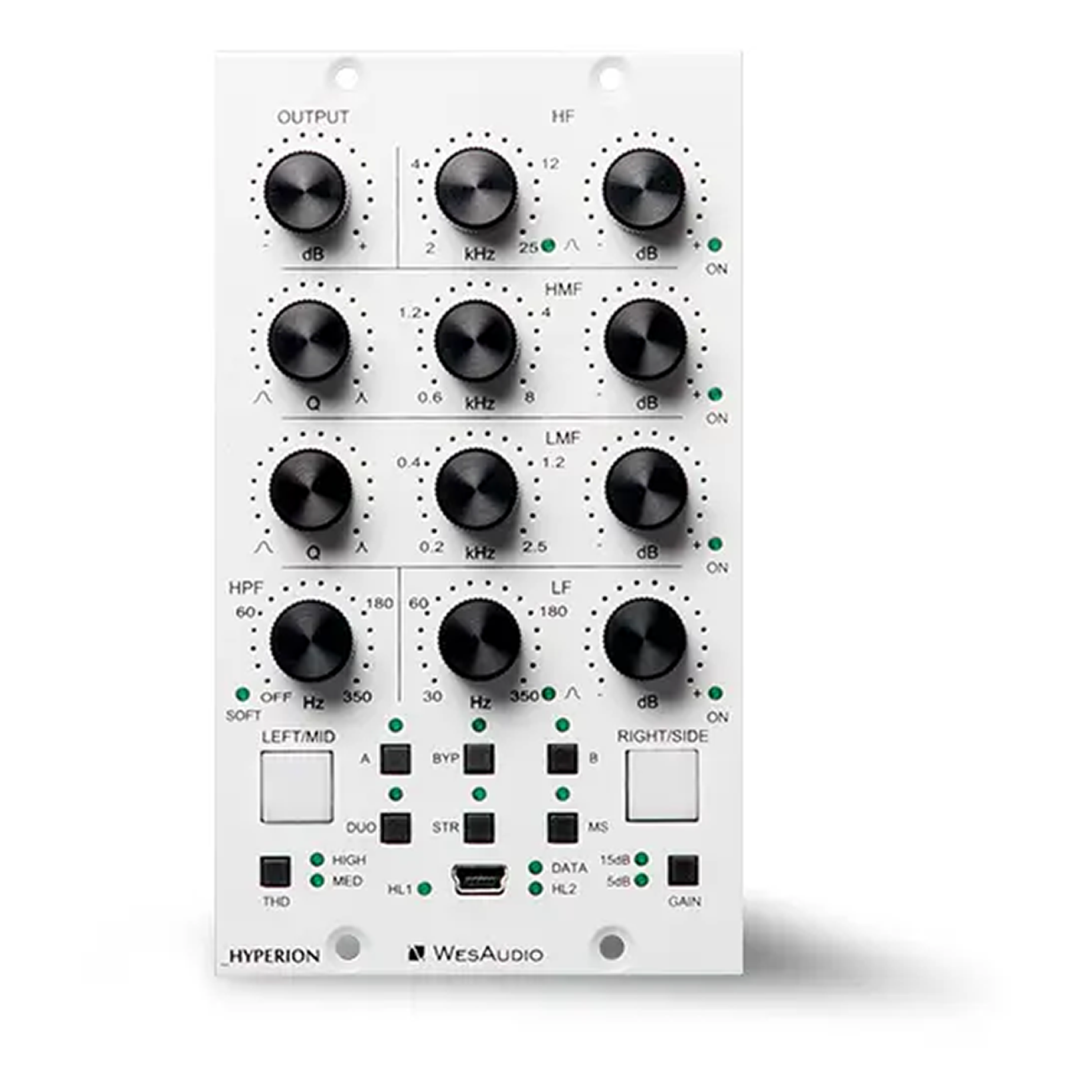 W pełni analogowy korektor parametryczny WesAudio Hyperion NG500 z cyfrowym recall. 4 pasma EQ, tryby Stereo/Mono/MS, THD, HPF i najwyższa jakość brzmienia.