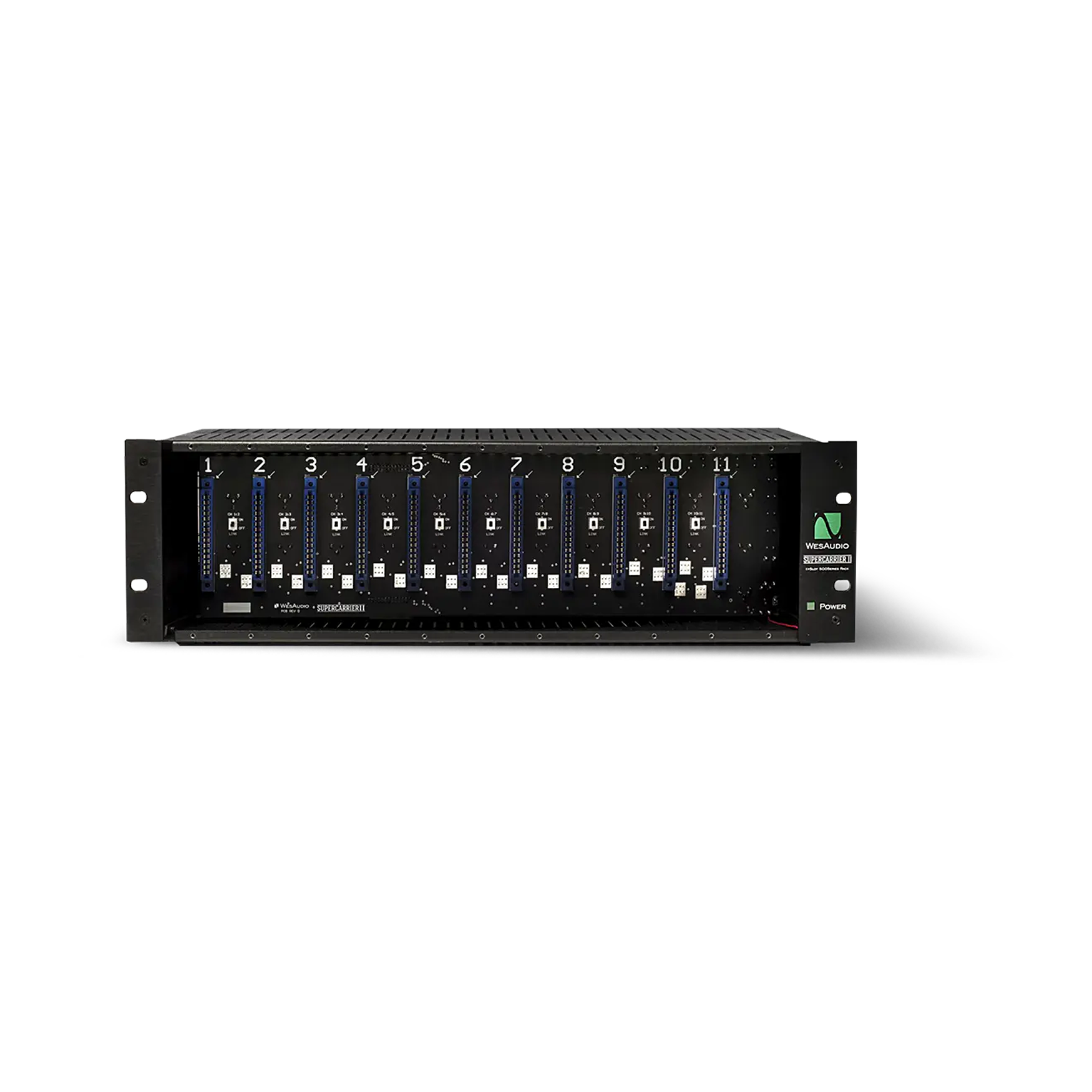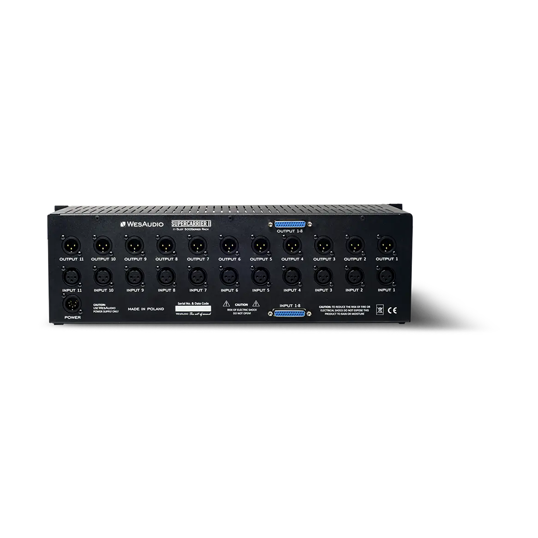 WesAudio Supercarrier II to rama serii 500 z 11 gniazdami, w pełni zgodna ze standardem API. Wyposażona w technologię ISP, kondensatory tantalowe i solidny zasilacz toroidalny, zapewnia niezawodną, wolną od zakłóceń pracę Twoich modułów analogowych w profesjonalnym studio.