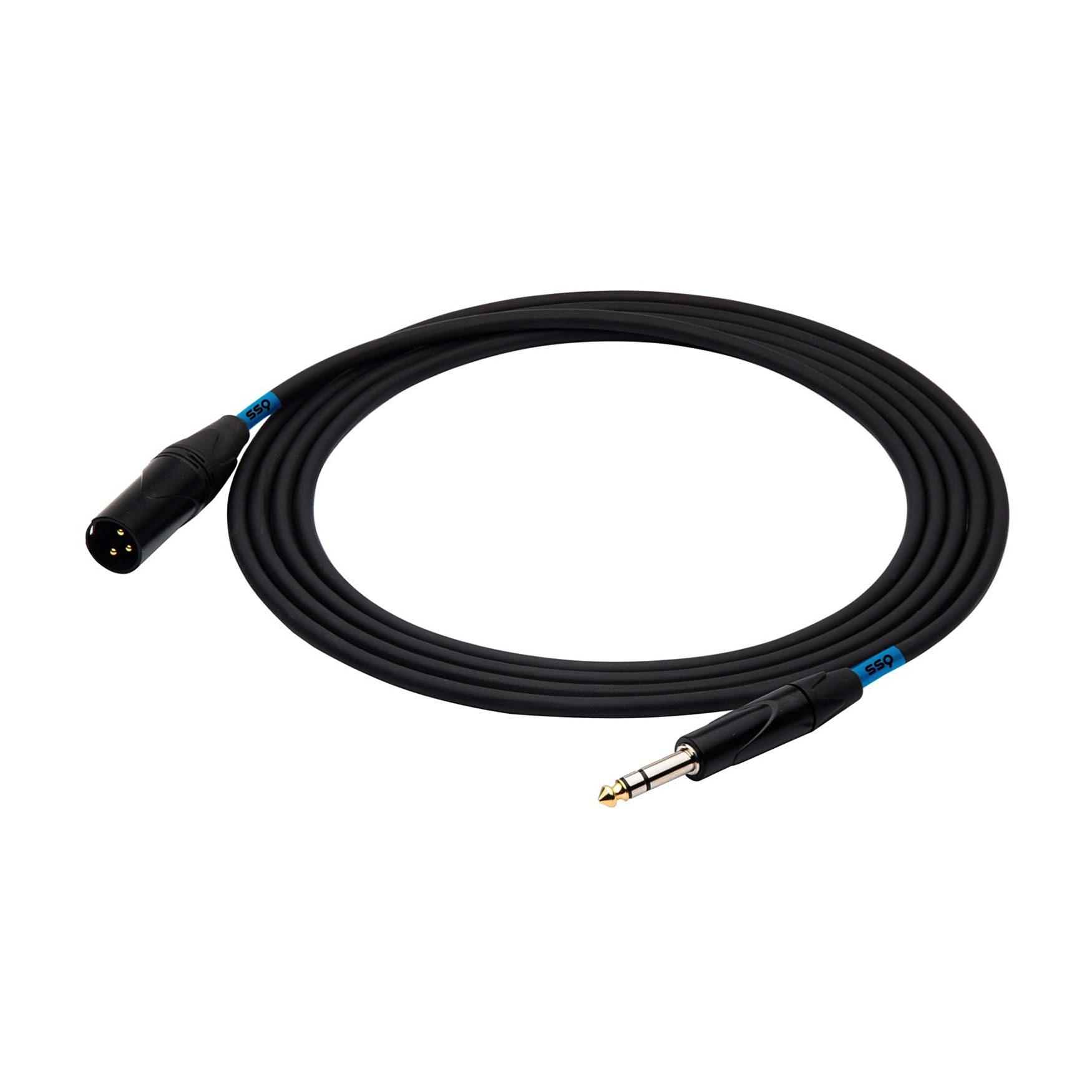 SSQ JSXM2 – kabel jack stereo – XLR Męski 2 metrowy. Końcówki zakończone są z jednej strony XLRem męskim, a z drugiej strony czarnym Jackiem stereo 6,3mm.