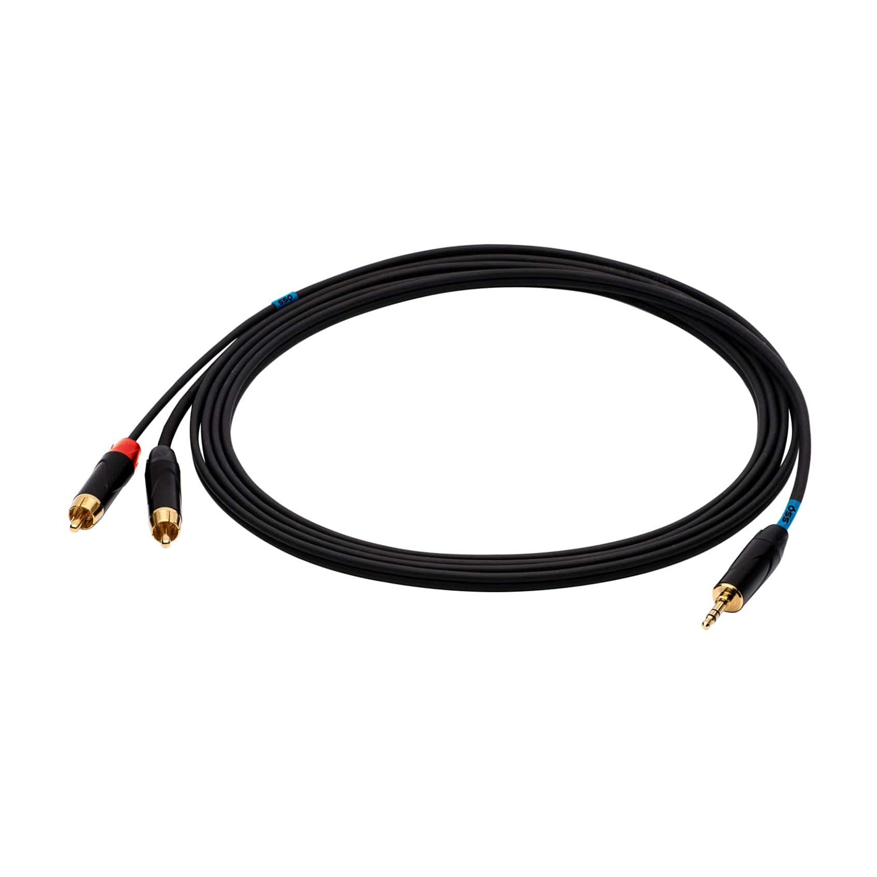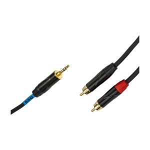 Model MiJRCA2 to kabel z jednej strony zakończony pozłacanym jackiem stereo 3,5 mm, a z drugiej dwoma pozłacanymi wtykami RCA.