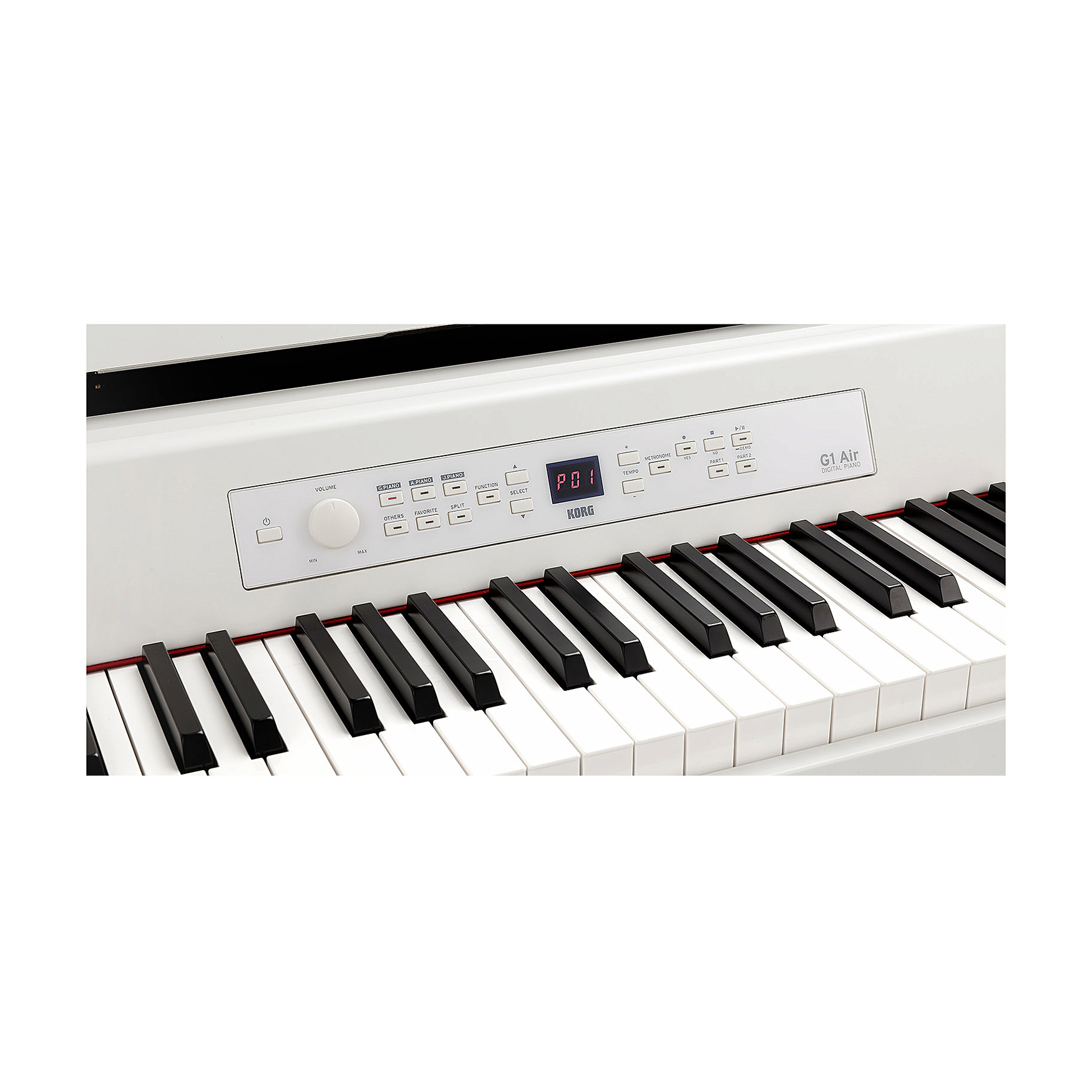 Pedały stanowią istotny element wykonawstwa fortepianowego, a G1 wyposażony jest w pełne uzupełnienie trzech pedałów występujących na fortepianie: damper, miękki i sostenuto. Dodatkowo pedały wyposażone są w funkcję pół-pedału zapewniającą jeszcze bardziej szczegółową ekspresję.Różnorodność opcji układu klawiatury Korg G1 Air WA