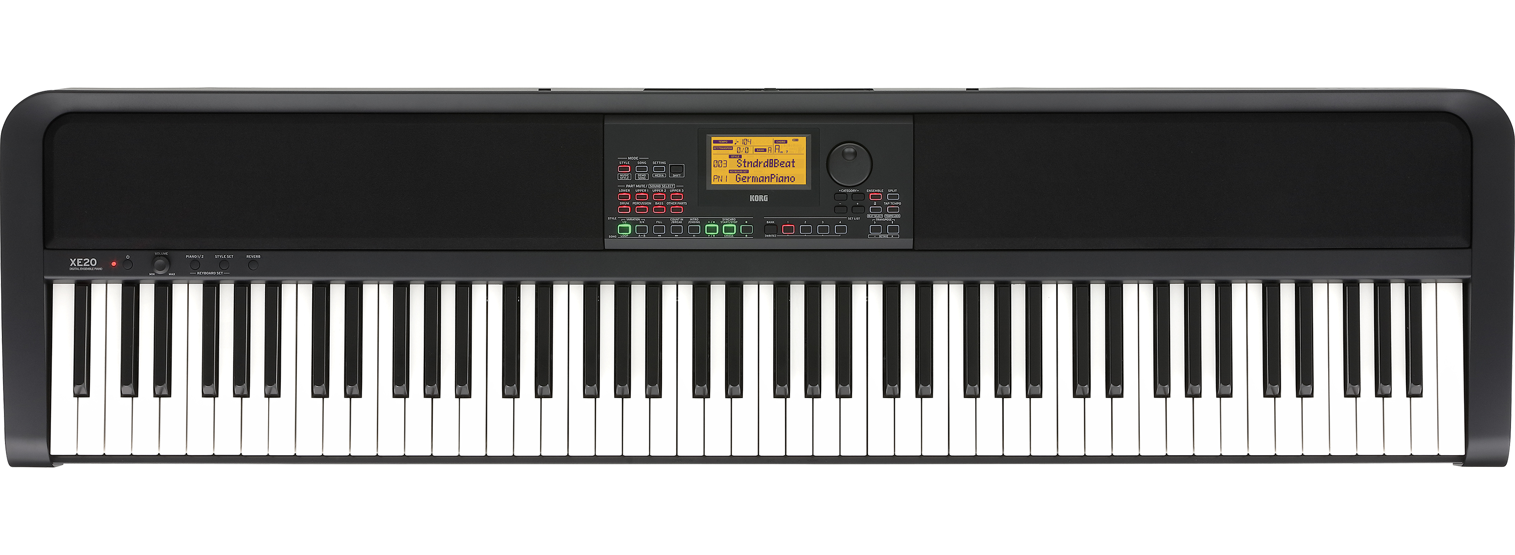 Korg XE20 – pianino cyfrowe z 88 dźwiękową, ważoną klawiaturą oferującą doznania z gry na prawdziwym pianinie akustycznym. XE20 posiada funkcję automatycznego akompaniamentu, dwa wysokiej jakości brzmienia fortepianów (niemiecki i włoski), kolekcję ponad 700 brzmień takich jak electric piana, synthy, organy, instrumenty dęte i smyczkowe oraz wiele więcej. Pakiet oprogramowania do nauki gry w zestawie!