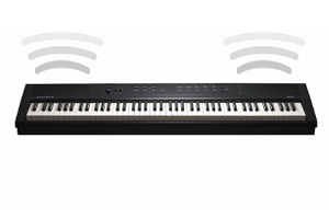 - Klawiatura: 88-nutowa, w pełni ważona, młoteczkowa z regulowaną czułością na dotyk (H1 Ivory)