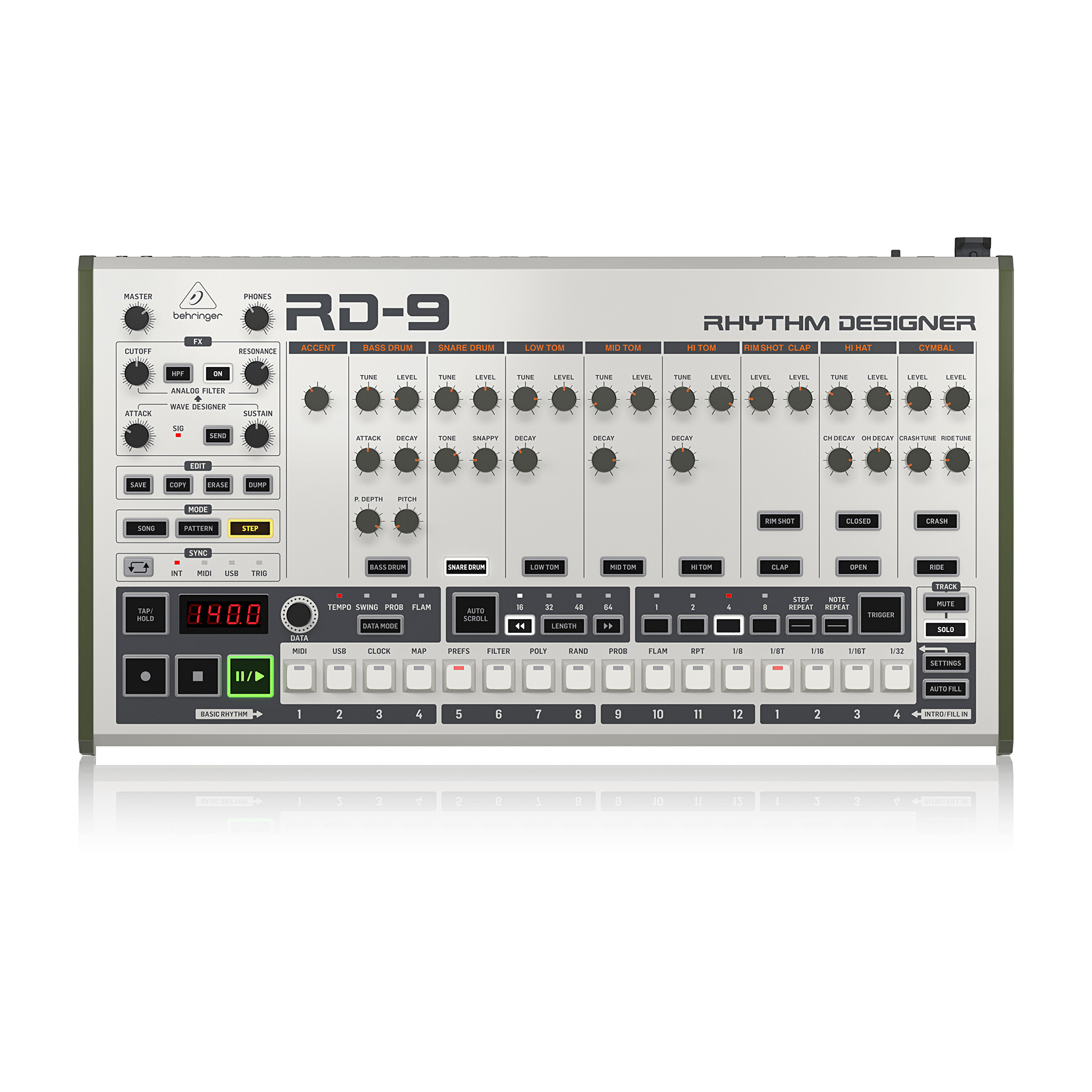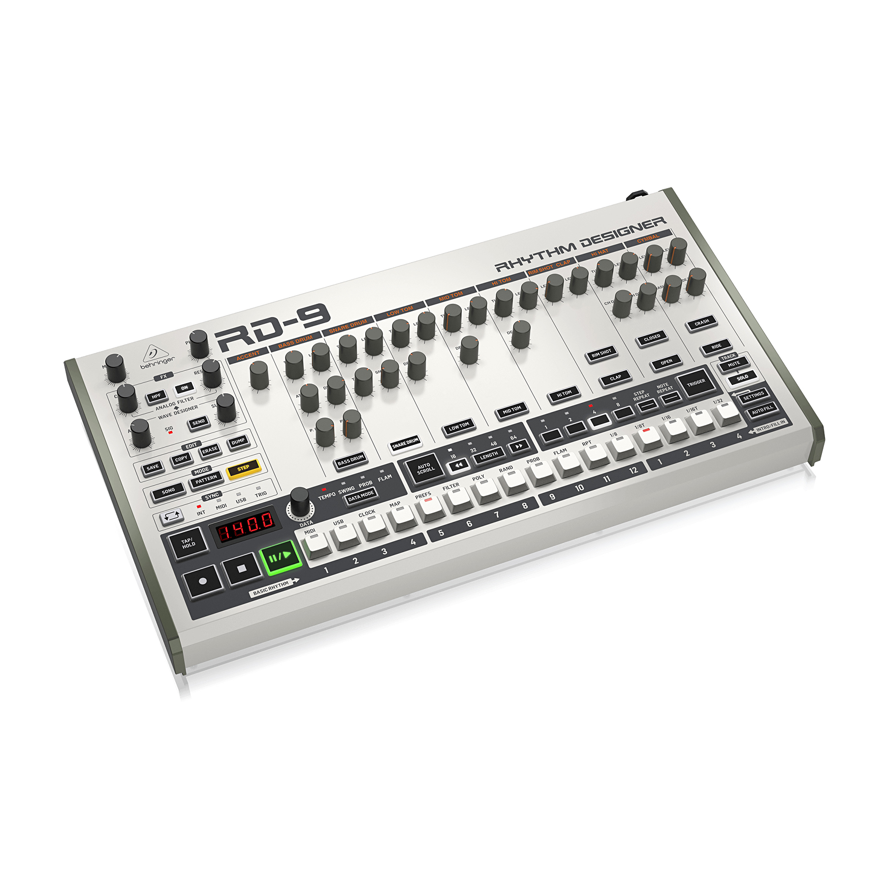 Behringer RD-9 to klasyczny analogowy automat perkusyjny z 11 brzmieniami bębnów, 64-krokowym sekwencerem, Wave Designerem i podwójnym filtrem trybów pracy.
