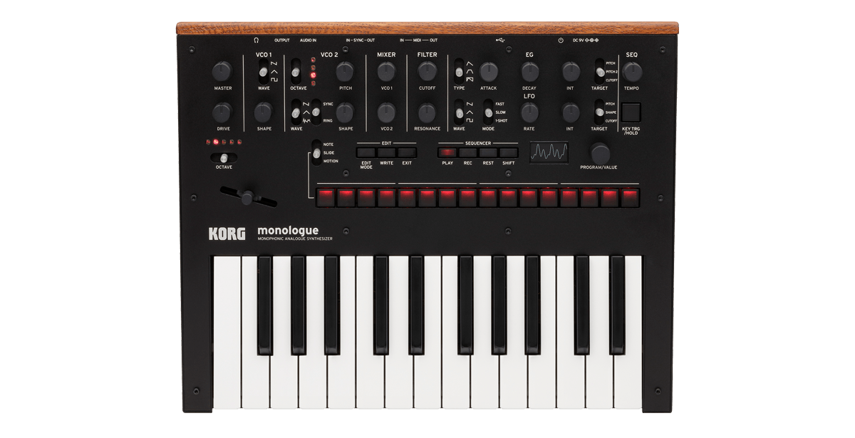 Monologue to 25-klawiszowy instrument z unikatową sygnaturą brzmieniową, spakowany w kompaktowej formie, w której zmieściliśmy wszelkie niezbędne gałki i pokrętła zgodnie z naszą ideą "knob-per-function". Bazujący na wysokiej klasy komponentach zastosowanych we wcześniejszym bestsellerze - Minilogue, Monologue jest prawdziwie unikalnym syntezatorem dla muzyków wszelkich stylów, dostępny w świetnej cenie. Analogowy syntezator z zupełnie nową strukturą syntezy zoptymalizowany do produkcji niesamowitych dźwięków monofonicznych i zaawansowanych sekwencji.