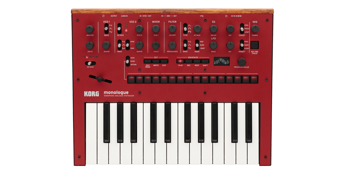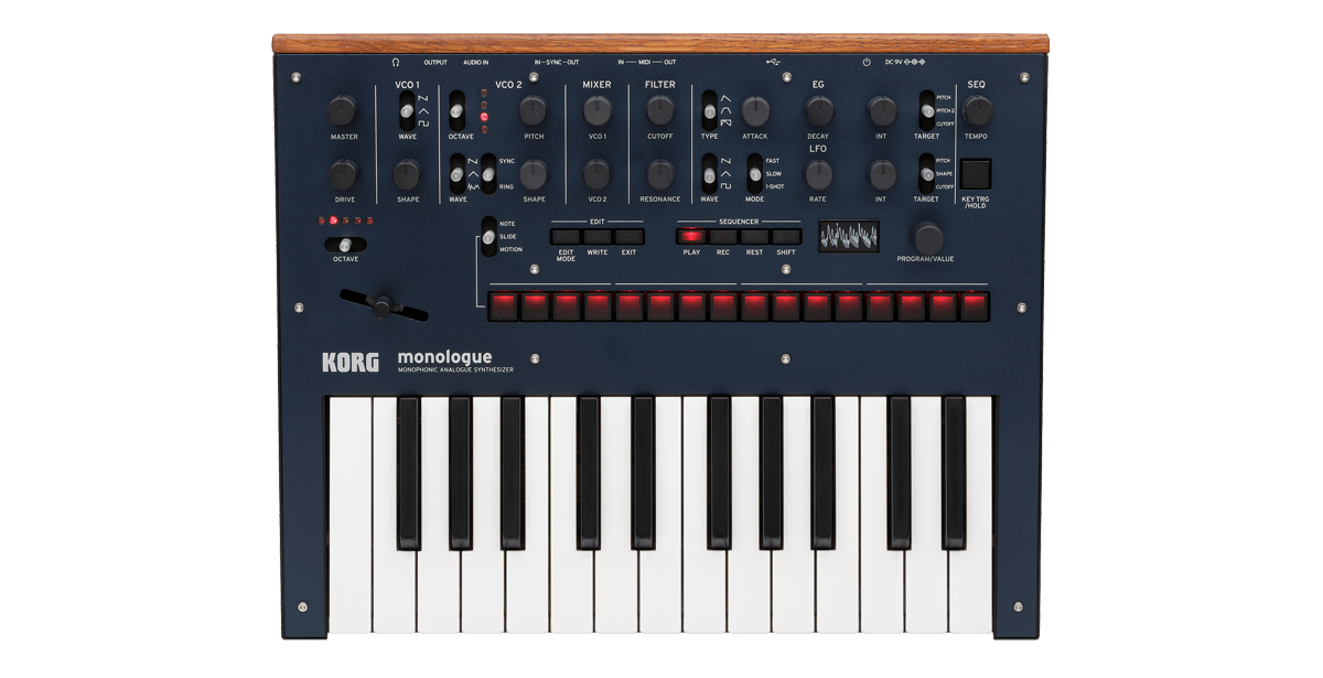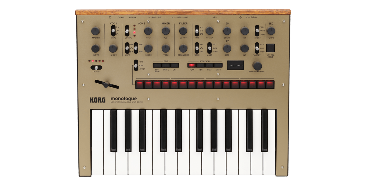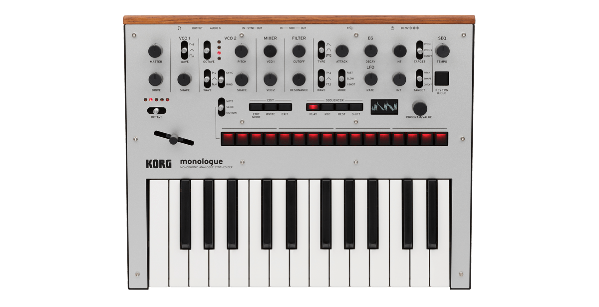 Monologue zawiera monofoniczne obwody syntezy analogowej, na podstawie których budowano minilogue'a. Nie oznacza to jednak, że monologue jest po prostu jednogłosową wersją swojego większego brata. To monofoniczna bestia, w której przeprojektowano sekcję obwiedni, routing modulacji oraz filtr, dzięki któremu możesz uzyskać teraz potężne uderzenie w niskich rejestrach.Struktura instrumentu to 2VCO, 1VCF, 1EG, 1VCA i 1LFO. Ponadto te same charakterystyczne układy, które pojawiły się w minilogue'u (takie jak kształtowanie fali, która kształtuje alikwoty oscylatora i przełącznik sync/ring), sekcja filtra wykorzystuje filtr dwubiegunowy dostarczając agresywniejszy dźwięk. Nowo dodany jest układ drive, który pozwala dodać dodatkowe alikwoty i przesterowanie, pozwalając generować tłuste basy i ostre leady. LFO może zostać regulowane w zakresie do bezprecedensowej ultra wysokiej skali by generować wstrząsające dźwięki lub przełączone do trybu one shot do działania jako - w pewnym sensie - jako dodatkowa obwiednia.Sekcja klawiatury to uznany już model z instrumentów minilogue i MS-20 mini. Aby monologue był syntezatorem, ktory każdy muzyk będzie mógł natychmiast podnieść i grać, klawiatura obejmuje zakres nut od E do E - jak w gitarach lub basach.