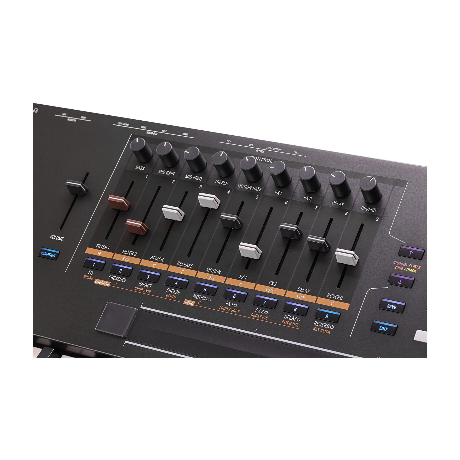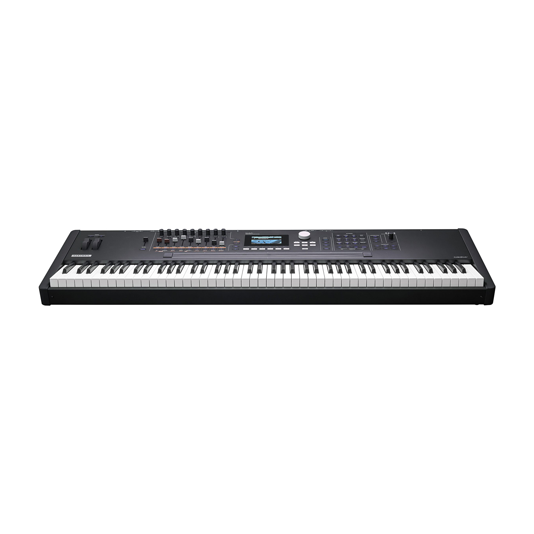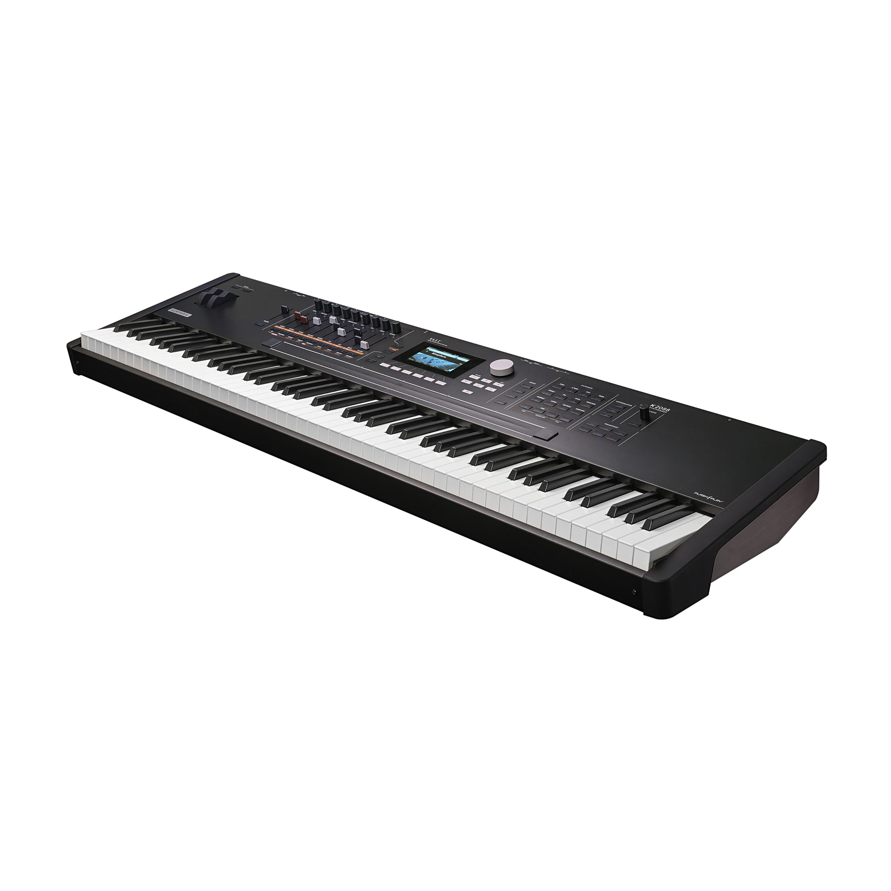 Technologia V.A.S.T. narodziła się w serii K2000. K2088 rozszerza legendarną technologię Syntezy o Zmiennej Architekturze Kurzweila, oferując 32 warstwy na program, głęboko konfigurowalne ścieżki sygnału i wiele modułowych narzędzi DSP, w tym nowe oscylatory, warstwy FM, filtry wielobiegunowe i FX. FlashPlay® zapewnia K2088 oszałamiającą moc obliczeniową. Do 4 GB całkowitej pojemności przy zerowym czasie ładowania i ultraszybkiej wydajności. Kurzweil K2088 zapewnia ogromną bibliotekę brzmień zawierającą ponad 2000 programów fabrycznych i ponad 500 kombinacji Multi skoncentrowanych wokół zaktualizowanych odtworzeń wielu syntezatorowych brzmień z legendarnych instrumentów Kurzweil K2000, K2500 i K2600, a także odświeżonych must-have'ów z K2700, Forte, PC4, PC3 i SP6. Skategoryzowane wybory obejmują również światowej klasy fortepiany, EP, organy, smyczki, basy, gitary i wiele innych. Dzięki 2 GB nieulotnej pamięci flash na sample użytkownika, możesz wykorzystać niezrównaną kompatybilność wsteczną Kurzweil, czerpiąc z dziesięcioleci legendarnych brzmień, od K2000 po serię K2700. Obsługiwane formaty obejmują .WAV, .AIF (do 16-bit/96kHz) i specyficzne dla Kurzweil typy plików (.K27, .FOR, .PC4, .P3K, .KRZ, .K25, .K26). Mnóstwo błyskawicznej polifonii wspierającej najbardziej wymagające dźwiękowe eksploracje i występy. 6-operatorowy silnik FM z możliwością ładowania oryginalnych plików FM SysEx. Warstwy FM są nowym dodatkiem do programów VAST i mogą być łączone z funkcjami VAST, aby wyjść daleko poza klasyczną syntezę FM. Seria K20 wyposażona jest w zaawansowane oscylatory w postaci mocy antyaliasingowej i przetwarzanie DSP wywodzące się z legendarnego syntezatora koncepcyjnego VA1 firmy Kurzweil, oferując autentyczne emulacje analogowe wraz z oszałamiająco skomplikowanymi nowymi dźwiękami. K2088 zapewnia bogaty zestaw profesjonalnych efektów, w tym bujne pogłosy, dynamiczne opóźnienia, bogate chorusy i wiele innych - wszystko to można dostosować do własnego brzmienia. Dedykowana sekcja Master FX z 3-pasmowym korektorem i kompresją zapewnia, że miks jest dopracowany i gotowy do wykonania. Zainspirowany klasycznymi organami tonewheel, K2088 oferuje 9 realistycznych drawbarów i pełną kontrolę nad prędkością obrotową, chorusem/wibrato, hamulcem, perkusją i nie tylko - wszystko to jest natychmiast dostępne. 88-dźwiękowa, w pełni ważona klawiatura młoteczkowa K2088 zapewnia dynamiczne, responsywne wrażenia z gry, idealne do występów o wysokiej energii i szczegółowego projektowania dźwięku. Wyposażona w aftertouch dla dodatkowej ekspresji oraz w pełni regulowane ustawienia prędkości i nacisku, płynnie dostosowuje się do stylu gry, zapewniając wyjątkowy komfort i kontrolę. Wyjdź poza zwykłe splity i layery i doświadcz nowych hiper multis, rozszerzenia doświadczenia pojedynczego programu. Ogromne kombinacje dźwiękowe są na wyciągnięcie ręki dzięki renomowanemu trybowi Multi firmy Kurzweil, oferującemu 16 stref niezrównanej kontroli MIDI! Podnieś poziom swoich występów i produkcji dzięki 40 programowalnym kontrolerom fizycznym na strefę multi. K2088 posiada wszechstronny 3-sekcyjny kontroler wstążkowy, aftertouch klawiatury, szereg programowalnych pokręteł, przycisków, suwaków, kół i wiele wejść pedałów. Dzięki 16 w pełni programowalnym arpeggiatorom i przeznaczonym elementom sterującym na panelu przednim, możesz tworzyć skomplikowane rytmy i ewoluujące tekstury. Niezależnie od tego, czy budujesz złożone sekwencje, czy napędzasz energiczne groove'y, każdy arpeggiator działa niezależnie, zapewniając niezrównaną głębię i dynamiczny ruch w każdej warstwie dźwięku. Ożyw swoje dźwięki dzięki 16 jednoczesnym sekwencerom krokowym MIDI CC, zapewniającym ewoluujące tekstury, animowane impulsy i ekspresyjny ruch dźwiękowy. Natychmiastowe wyzwalanie, synchronizowanie i kontrolowanie do 16 jednoczesnych sekwencji MIDI. Wybieraj z wbudowanej biblioteki patternów lub nagrywaj i importuj własne, aby uzyskać nieograniczone możliwości twórcze! Łatwa nawigacja po K2088 dzięki jasnemu, panoramicznemu, kolorowemu wyświetlaczowi LCD o przekątnej 4,3″ (480×272), zaprojektowanemu z myślą o przejrzystej i łatwej obsłudze. Przełączaj się między trzema różnymi trybami widoku (Duży, Lista i Szybki dostęp), na bieżąco, aby dostosować się do swoich potrzeb. Natychmiastowy dostęp do dźwięków poprzez bezpośrednie wprowadzanie lub przeglądanie przeglądarki kategorii z wygodnymi ustawieniami domyślnymi kategorii. Dostosuj swój workflow za pomocą trybu QuickAccess, aby utworzyć spersonalizowane grupy dźwięków do natychmiastowego przywołania. Potrzebujesz czegoś konkretnego? Funkcja wyszukiwania pozwala szybko zlokalizować dźwięki według nazwy lub słowa kluczowego, utrzymując kreatywność bez zakłóceń. Gdy już zawęzisz swój wybór, natychmiast przesłuchaj dowolny program fabryczny za pomocą funkcji Program Demo, ułatwiając eksplorację i odkrywanie idealnego brzmienia. Dodawaj niestandardowe notatki do swoich Programów i Multis, aby pomóc sobie śledzić swoją bibliotekę i bardziej złożone konfiguracje. Przejmij kontrolę nad arpeggiatorami, sekwencerami CC, wbudowanym sekwencerem wielościeżkowym i zewnętrznym DAW dzięki dedykowanej sekcji transportu głównego na panelu przednim. Graj w dowolnej tonacji lub oktawie natychmiast za pomocą dedykowanych przycisków transpozycji -/+ na panelu przednim, wygodnie umieszczonych nad kołami pitch i modulacji. Łatwe podłączenie do miksera, wzmacniacza lub monitorów studyjnych dzięki czterem zbalansowanym wyjściom 1/4″ TRS (dwie pary stereo) - K2088 zapewnia elastyczne kierowanie dźwięku. Ciesz się krystalicznie czystym dźwiękiem dzięki 32-bitowym przetwornikom cyfrowo-analogowym klasy premium, automatycznemu przełączaniu mono