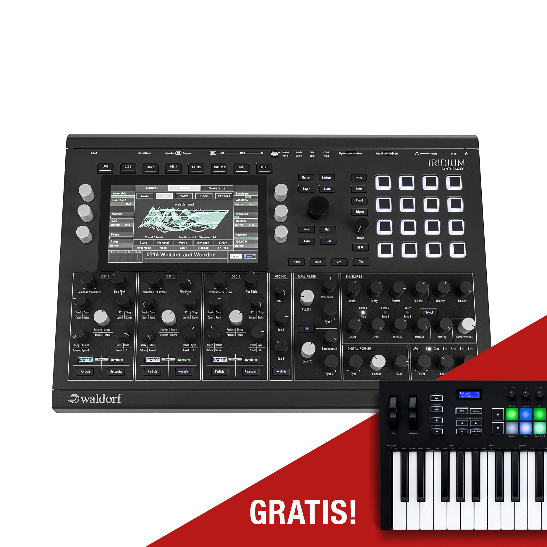 Iridium wyposażony jest w solidną metalową obudowę i oferuje ten sam poziom wykonania co Quantum. Dołącza do rodziny Waldorf jako duchowy następca PPG Wave – ale z jeszcze większym potencjałem.