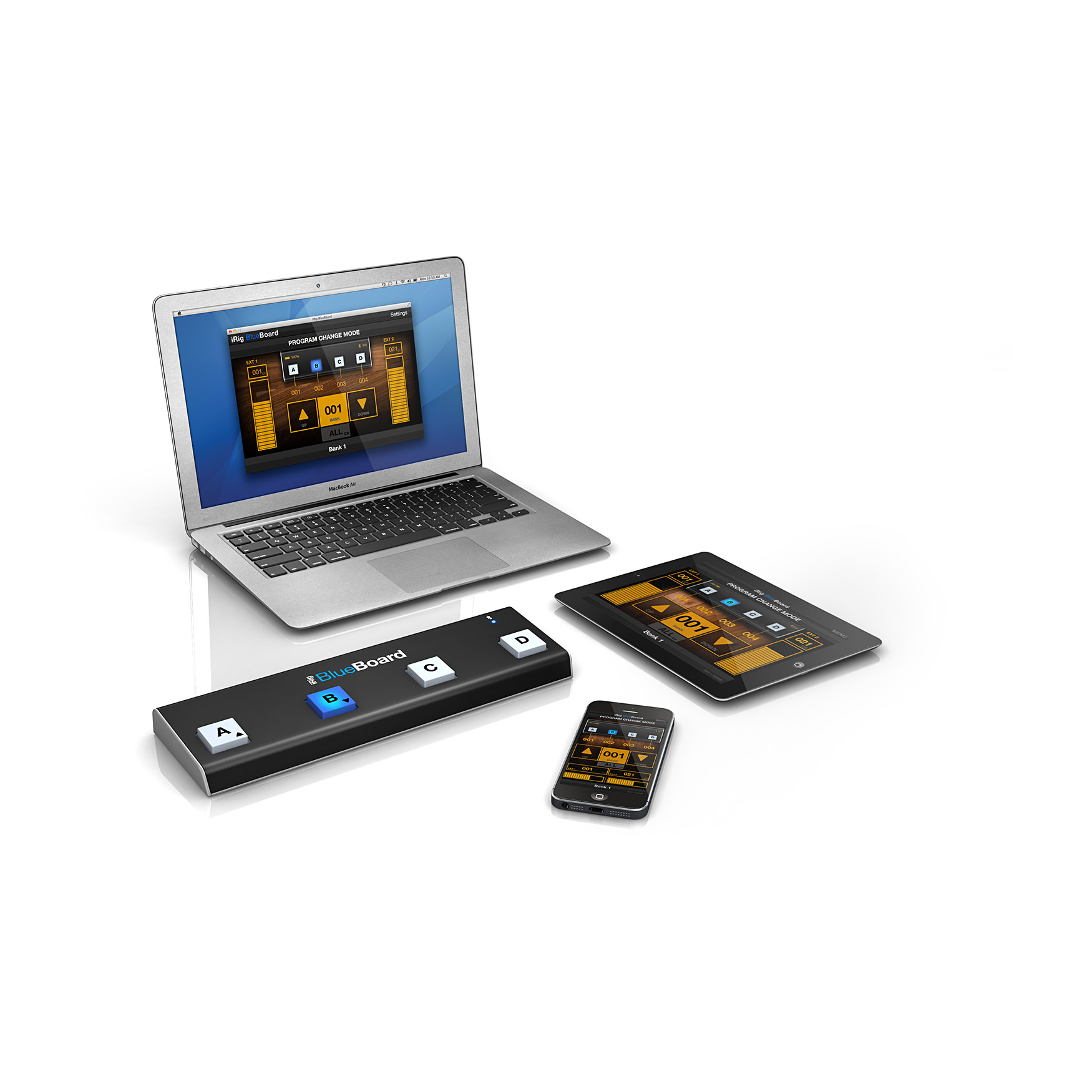 iRig BlueBoard to pierwszy bezprzewodowy kontroler nożny MIDI dla urządzeń z iOS oraz komputerów Mac. Umożliwia wygodne sterowanie aplikacjami muzycznymi z podłogi, bez plątaniny kabli. Pozwala przełączać presety, włączać i wyłączać efekty, a także kontrolować parametry takie jak głośność czy wah-wah.