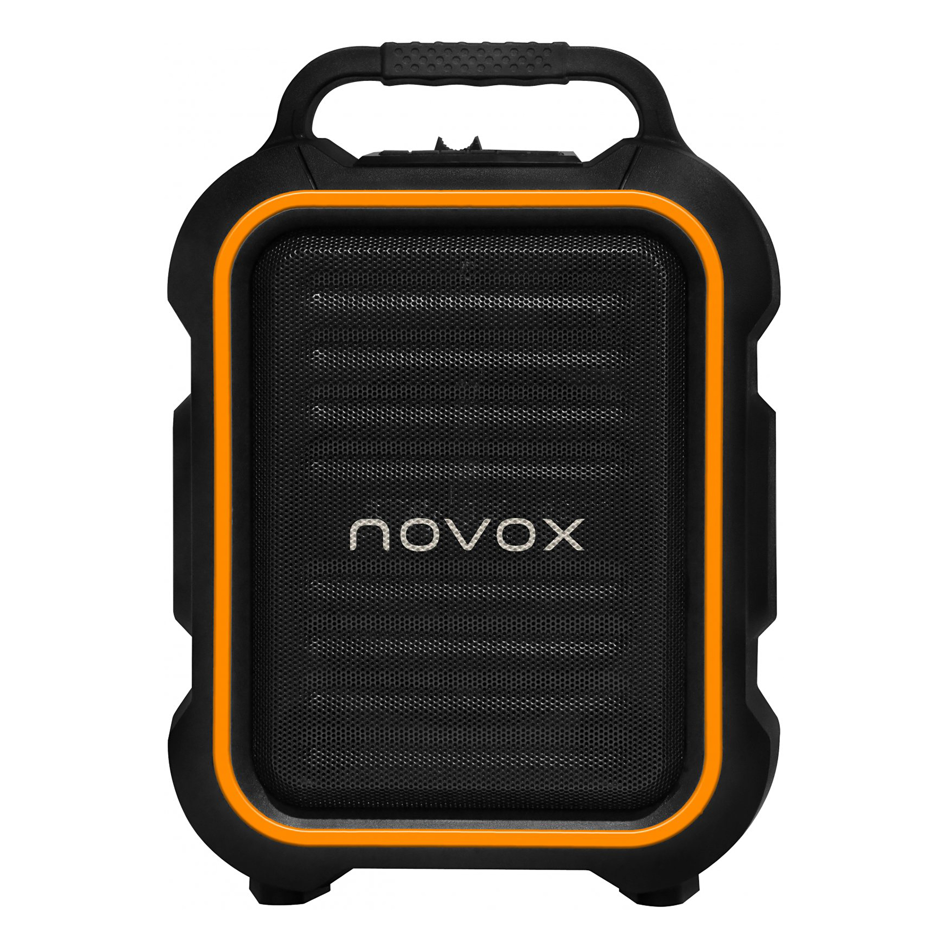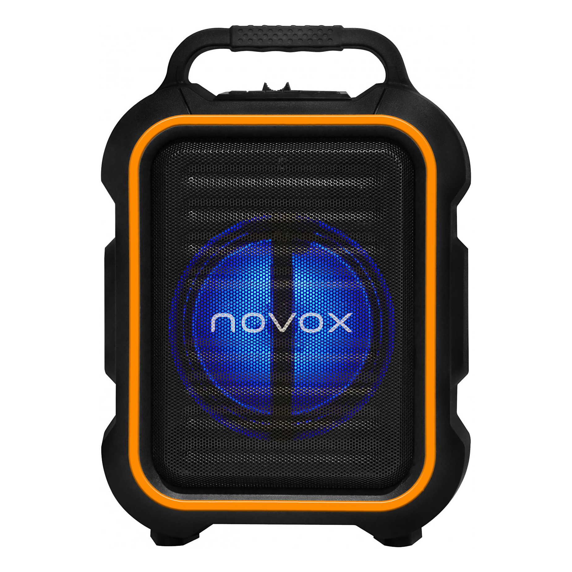 Novox MOBILITE Orange to mobilny system nagłośnieniowy o mocy 60W z wbudowanym odtwarzaczem MP3 USB/SD i Bluetooth oraz z mikrofonem bezprzewodowym.
