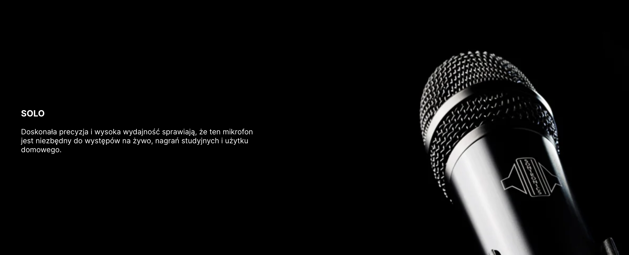 Sontronics Solo to dynamiczny mikrofon, który wyróżnia się z tłumu, zapewniając wyjątkowe rezultaty w cenie, na którą każdy może sobie pozwolić.Pierwszy i jedyny mikrofon dynamiczny, który został zaprojektowany, opracowany i wykonany w Wielkiej Brytanii; kapsuła o wysokiej wydajności Solo odtwarza całą obecność, głębię i czystość Twojego występu, jednocześnie minimalizując sprzężenia i zniekształcenia.Niezależnie od tego, czy używasz Solo w studio, na scenie, czy nawet w środowisku domowym, jego superkardioidalne przetworniki zapewnią doskonałe odrzucenie poza osią.Solo doskonale odnajdzie się w miksie, nie wymagając żadnego EQ ani post-processingu, co czyni Solo najlepiej działającym i najłatwiejszym w obsłudze mikrofonem dynamicznym na rynku.