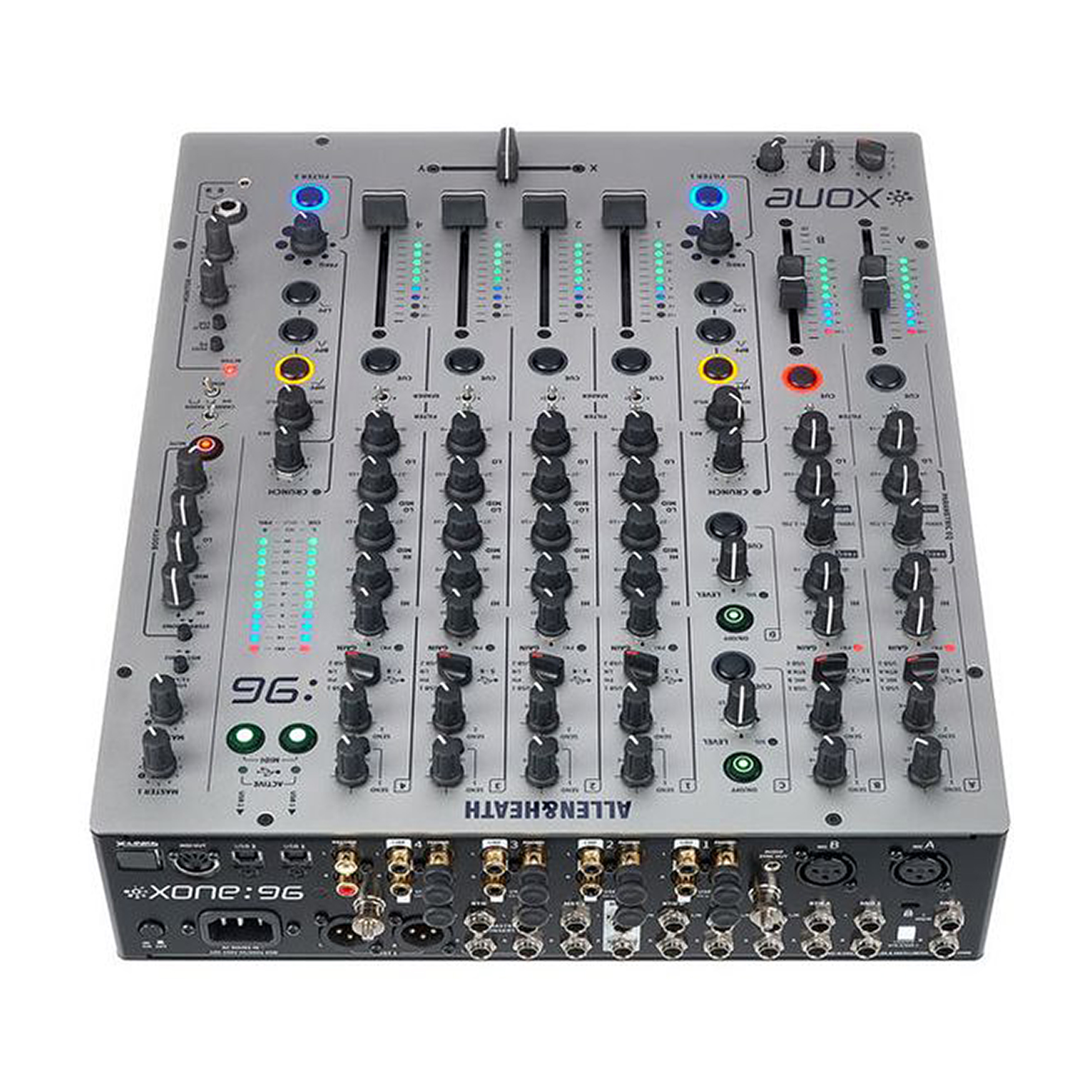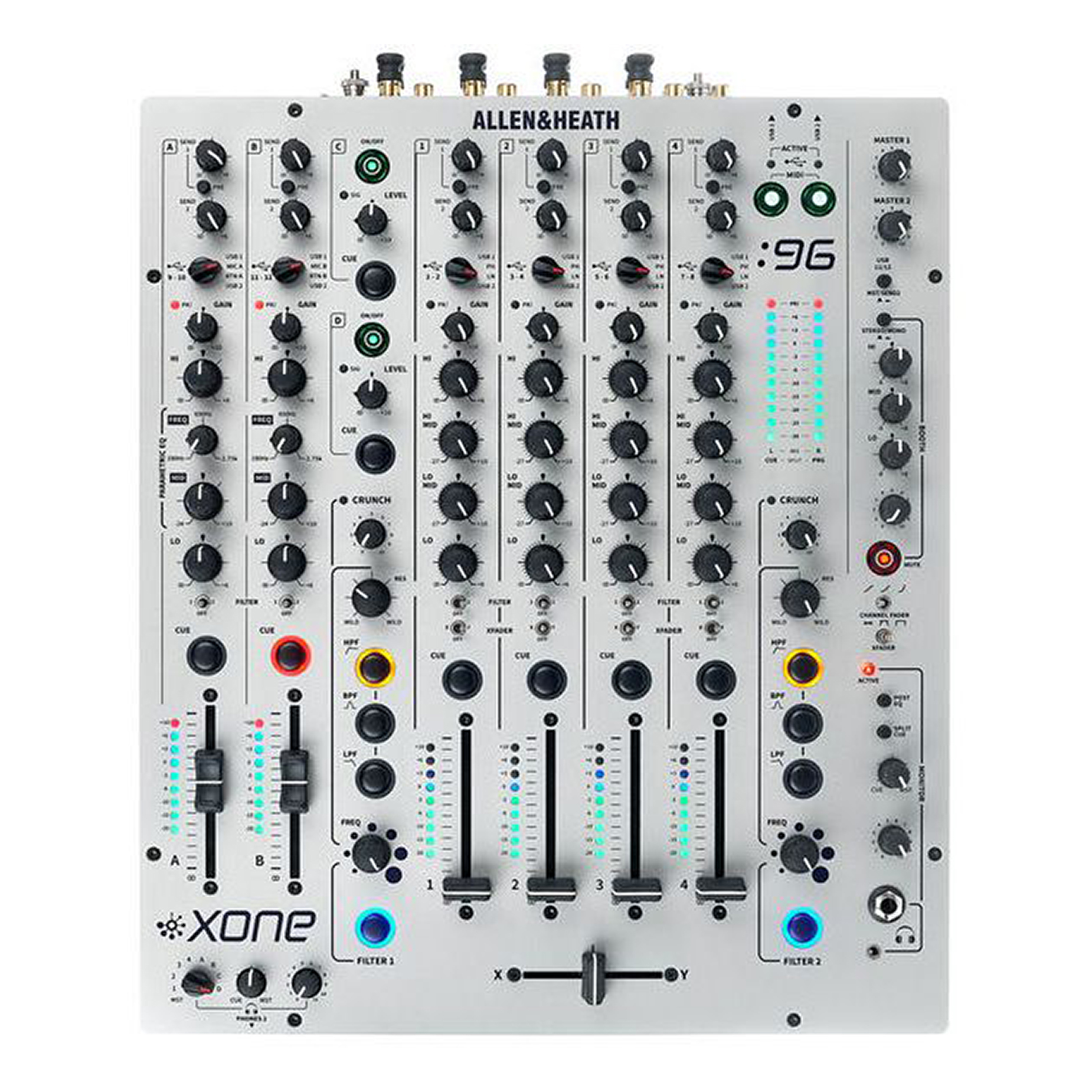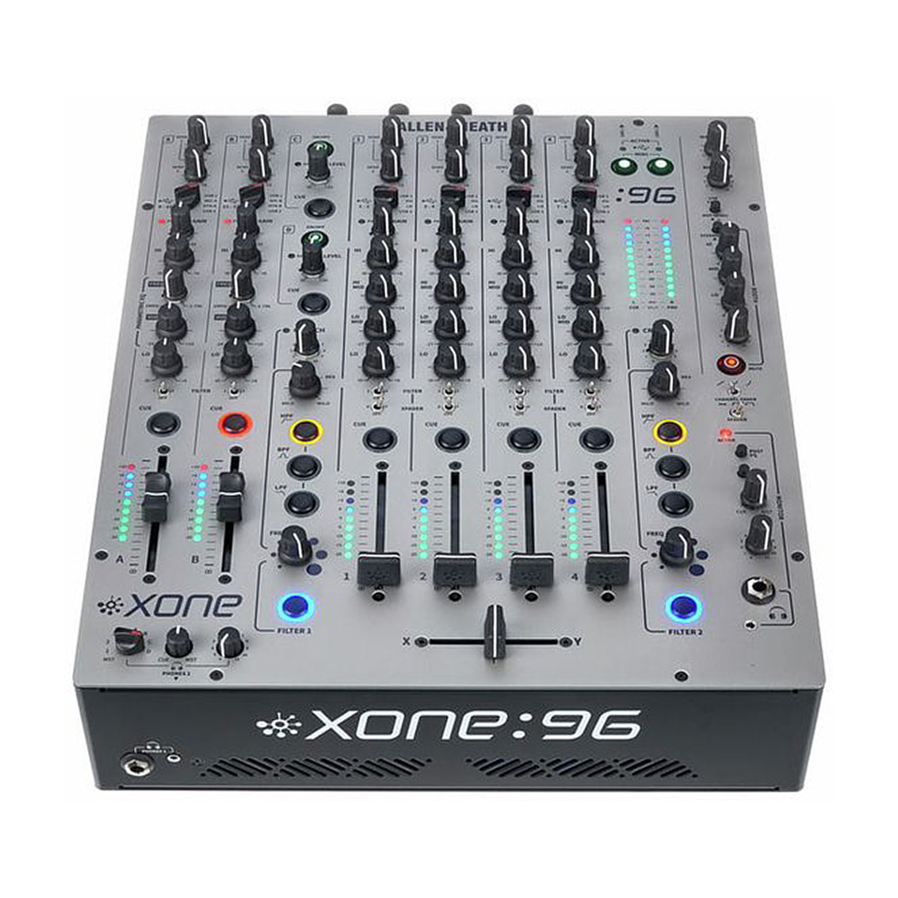 Allen & Heath Xone:96 to bezkompromisowy mikser DJ-ski, który łączy legendarny analogowy charakter modelu Xone:92 z nowoczesnymi rozwiązaniami cyfrowymi. Wyposażony w 6+2 kanały, podwójną 32-bitową kartę dźwiękową USB, certyfikat Traktor Scratch oraz kultowe filtry Xone:VCF z dodatkiem harmonicznego zniekształcenia Crunch, staje się centralnym punktem kreatywności dla DJ-ów i producentów na całym świecie.