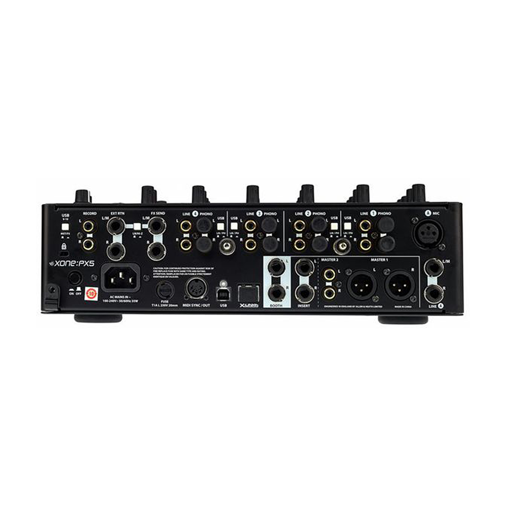 PX5 oferuje szerokie możliwości podłączeń – od laptopów i gramofonów po syntezatory i automaty perkusyjne. Dzięki silnikowi zegara MIDI mikser może synchronizować zewnętrzne instrumenty i oprogramowanie poprzez USB lub 5-pinowe gniazdo MIDI Sync/Out.