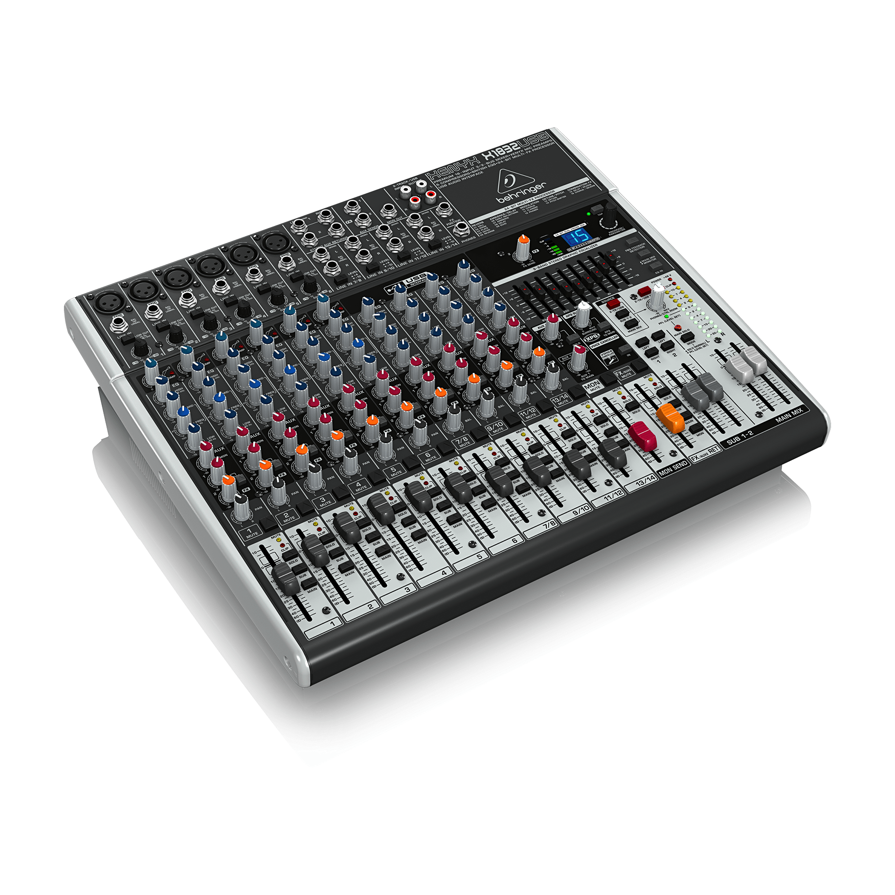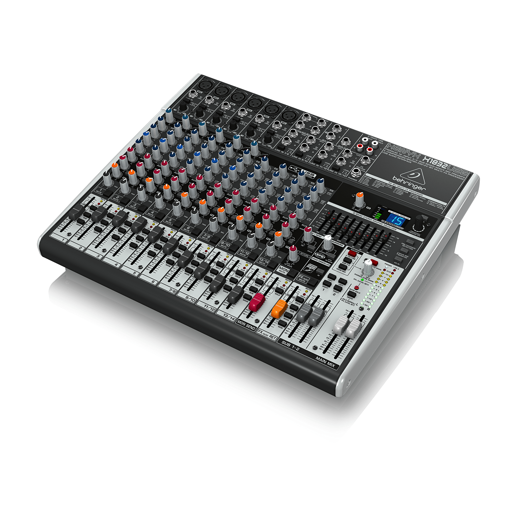 18-kanałowy mikser z 3/2 podgrupami z przedwzmacniaczami mikrofonowymi XENYX, kompresorami, klasyczną „brytyjską” korekcją, 24-bitowym procesorem efektów oraz interfejsem audio USB.