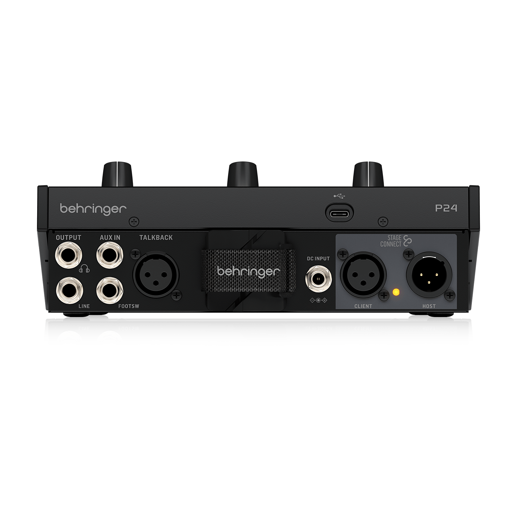 Behringer P24 to osobisty mikser monitorów StageConnect z 13 kanałami stereo i 60-milimetrowymi suwakami. Konfiguracja osobistych systemów monitorowania była w przeszłości nieporęczna i czasochłonna, ale już nie jest. Wszystkie kanały w Behringer P24 są przesyłane wraz z etykietami z konsoli za pośrednictwem AES50 lub StageConnect; dając ci czas na wybranie miksu.