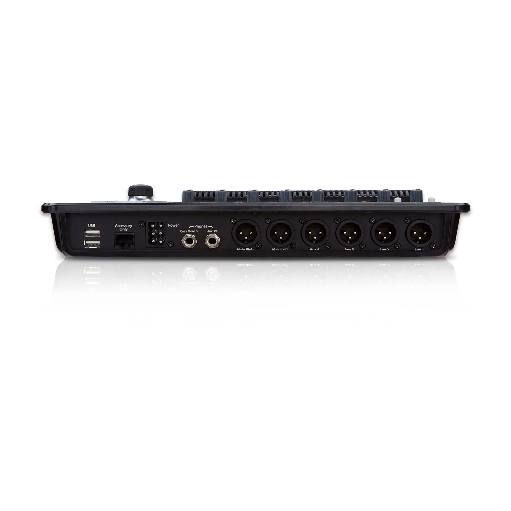 - Zasilanie phantom: 48 V, wszystkie wejścia mikrofonowe, przełączane indywidualnie