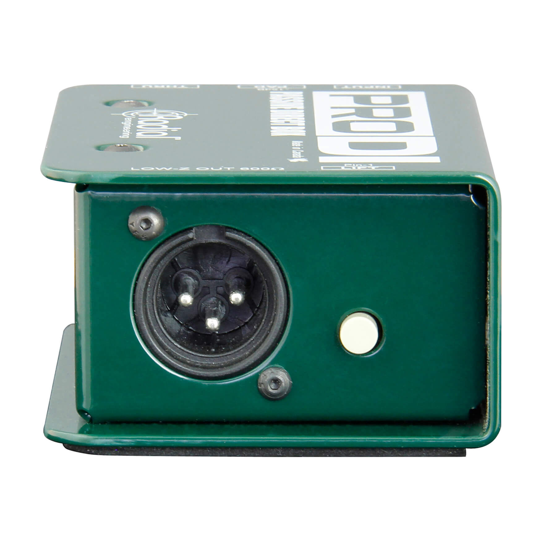 Radial ProDI to pasywny di-box przeznaczony do użytku na scenie lub w studio, z możliwością obsługi instrumentów o wysokiej mocy bez zniekształceń sygnału oraz z transformatorowo izolowanym wyjściem w celu wyeliminowania szumów pochodzących z pętli masy.