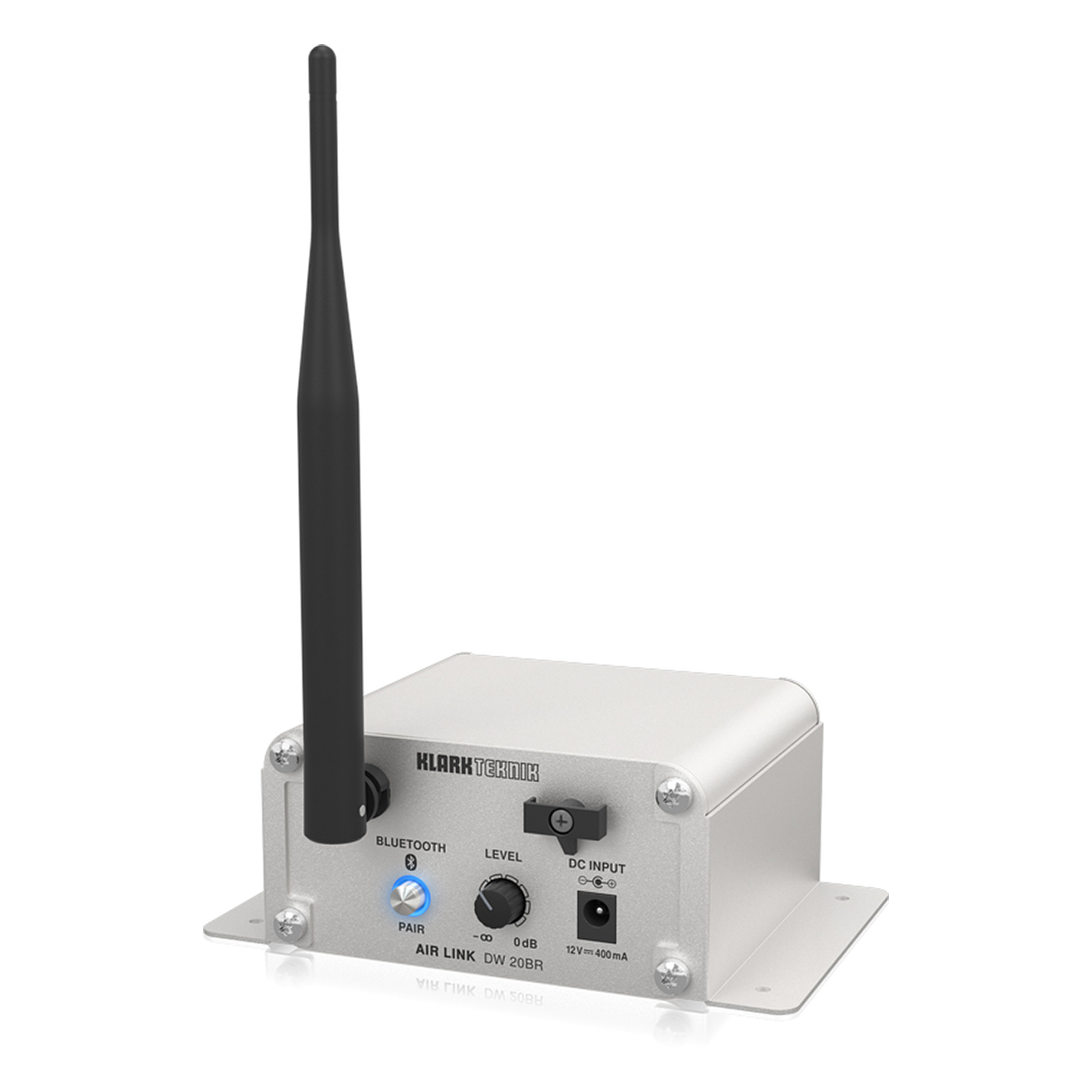 Klark Teknik AIR LINK DW 20BR – stereofoniczny odbiornik Bluetooth służący do sterowania systemem audio. Elastyczne możliwości montażowe oraz wysokiej jakości złącza TRS 1/4″ oraz XLR Neutrik.