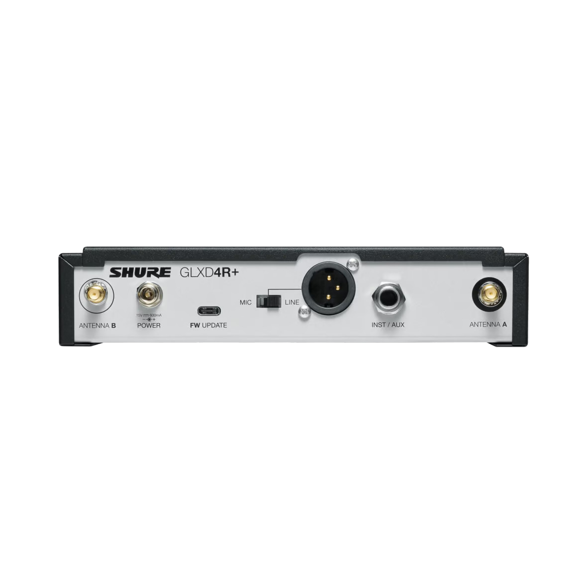 Shure GLX-D+ Dual Band Digital Wireless oferuje nowe funkcje, które wcześniej były niedostępne w pierwszej generacji GLX-D Wireless: działanie zarówno w częstotliwości 2,4 jak i 5,8GHz, ulepszoną żywotność baterii oraz zintegrowane wejście gitarowe ¼".