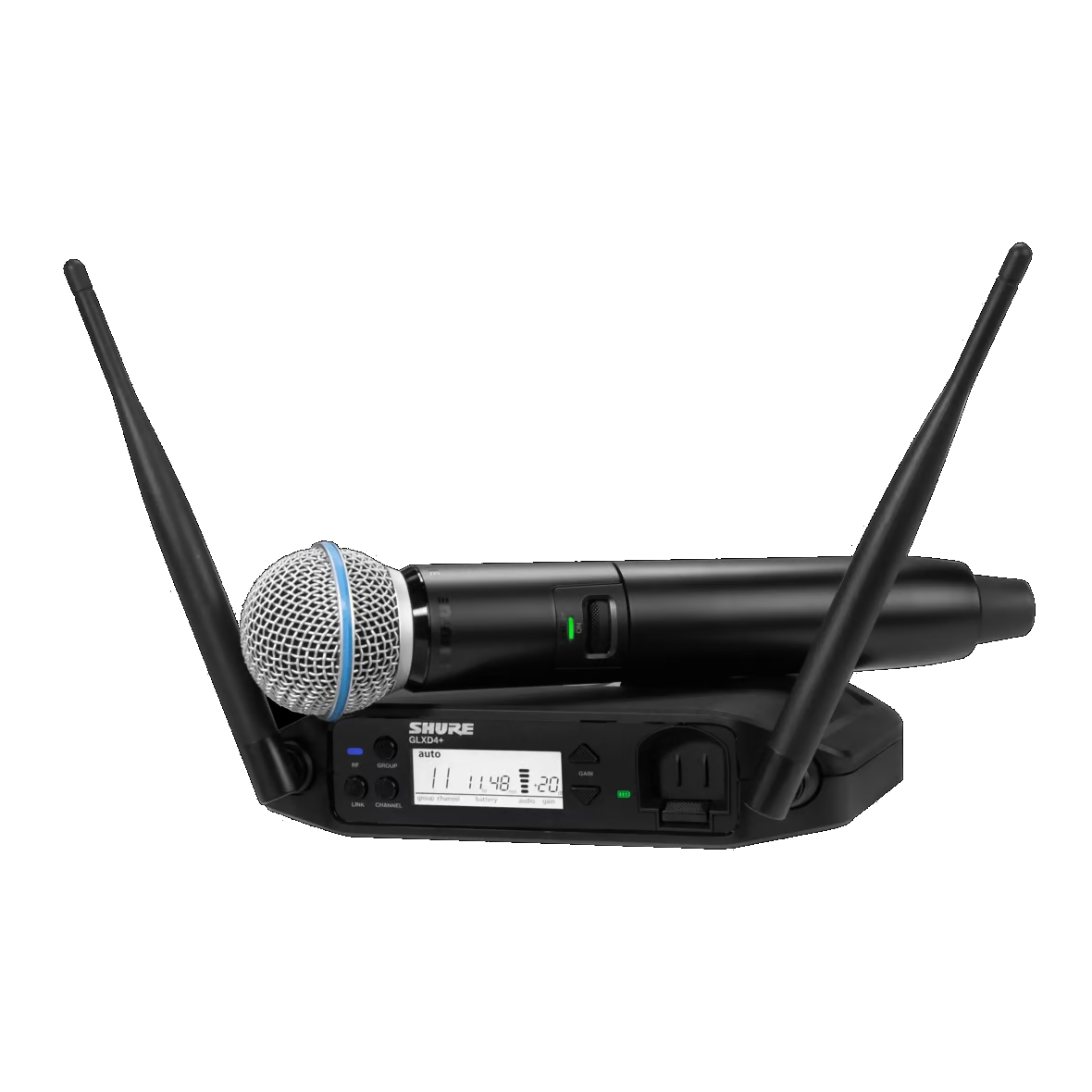 Wyposażony w standardowy w branży mikrofon wokalny Shure BETA®58A, nowy dwupasmowy system bezprzewodowy Shure GLXD24+/B58 zapewnia doskonały, przejrzysty dźwięk cyfrowy.