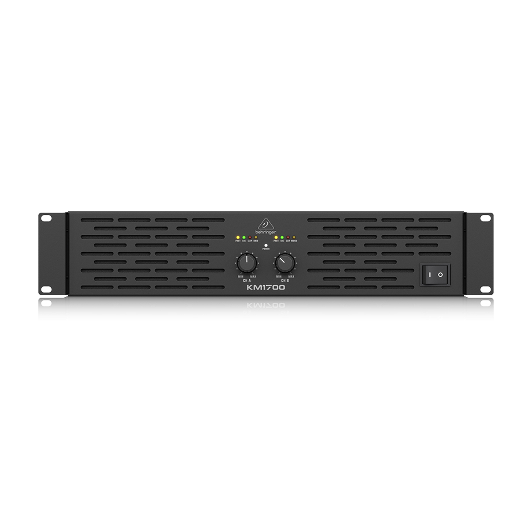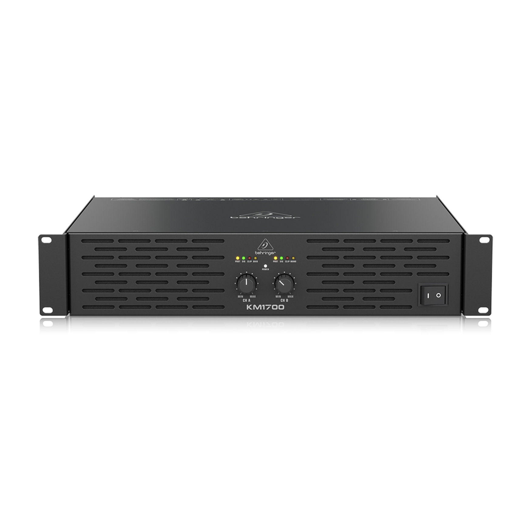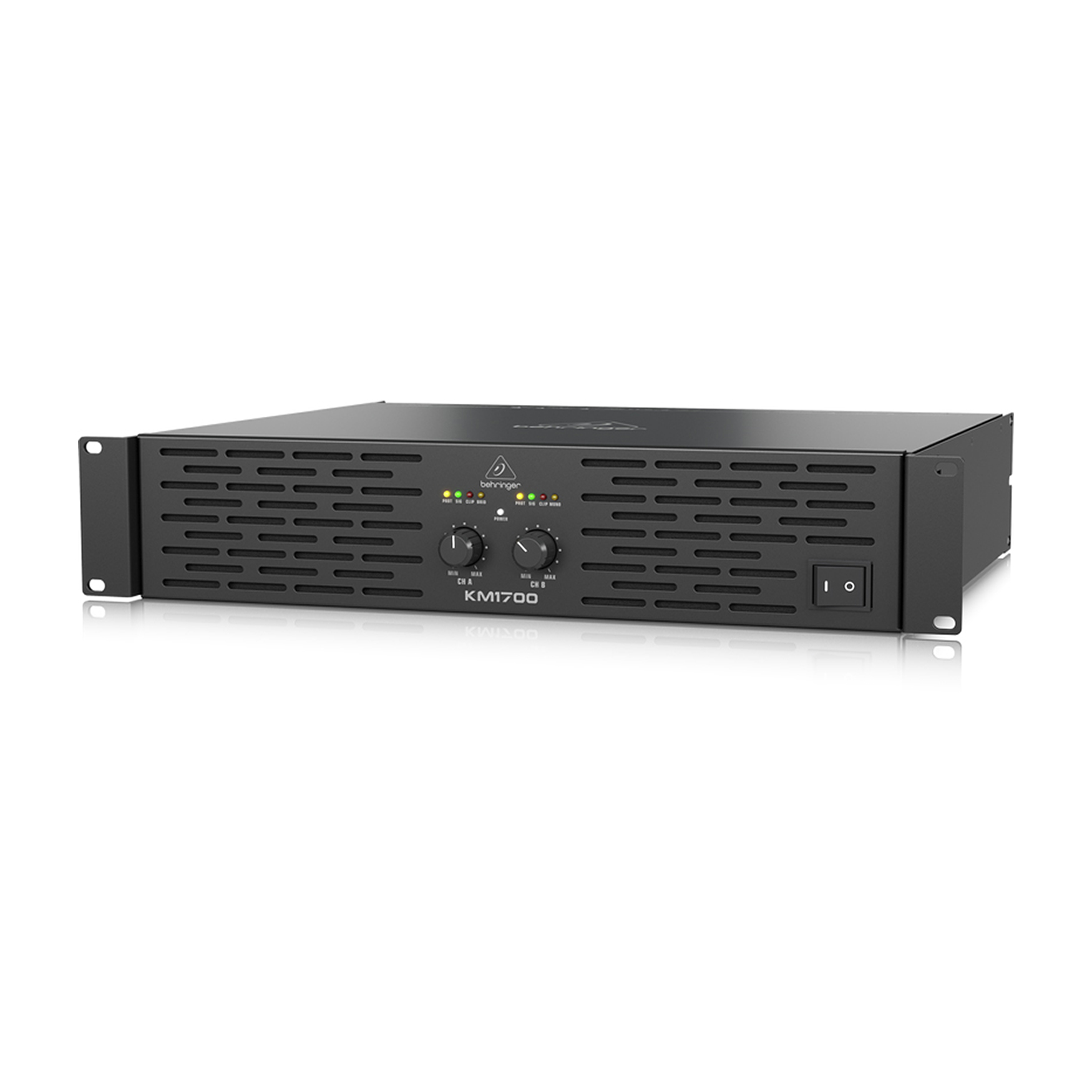 Behringer KM1700 – dwukanałowy wzmacniacz o maksymalnej mocy 1700 W, którą można uzyskać w trybie mono Bridge. KM1700 posiada wskaźniki LED Clip, Signal, Power dające wizualny feedback pracy wzmacniacza. Ponadto KM 1700 wyposażono w limitery chroniące głośniki przed przeciążeniem.
