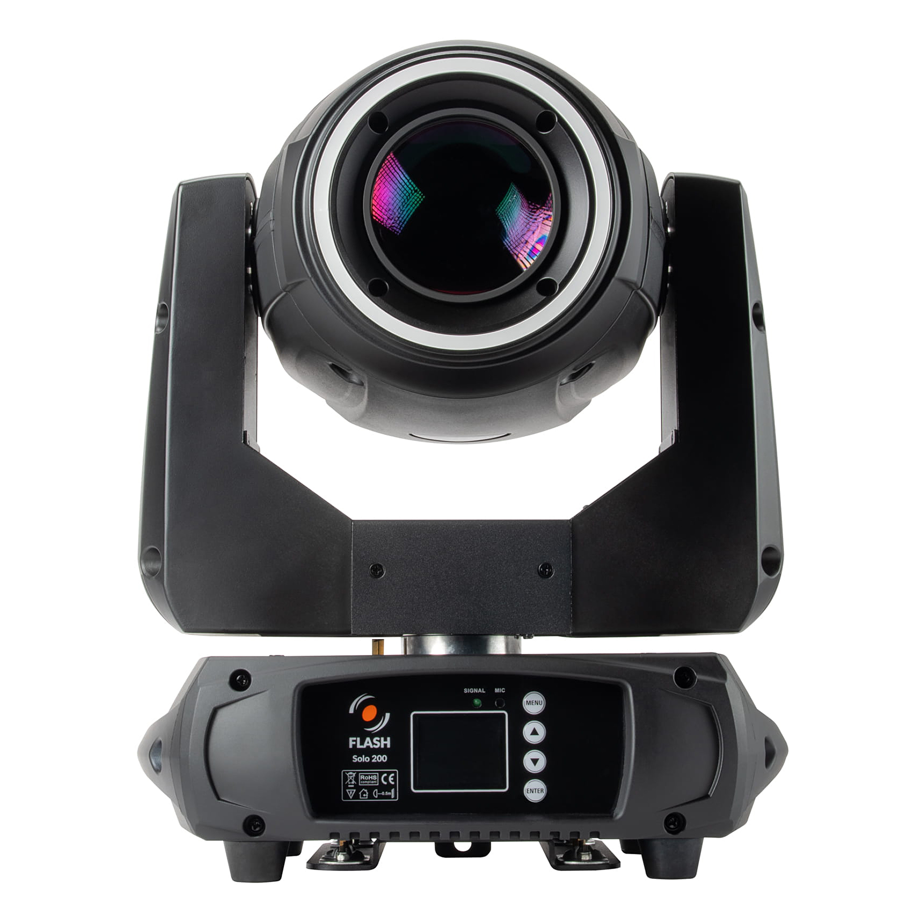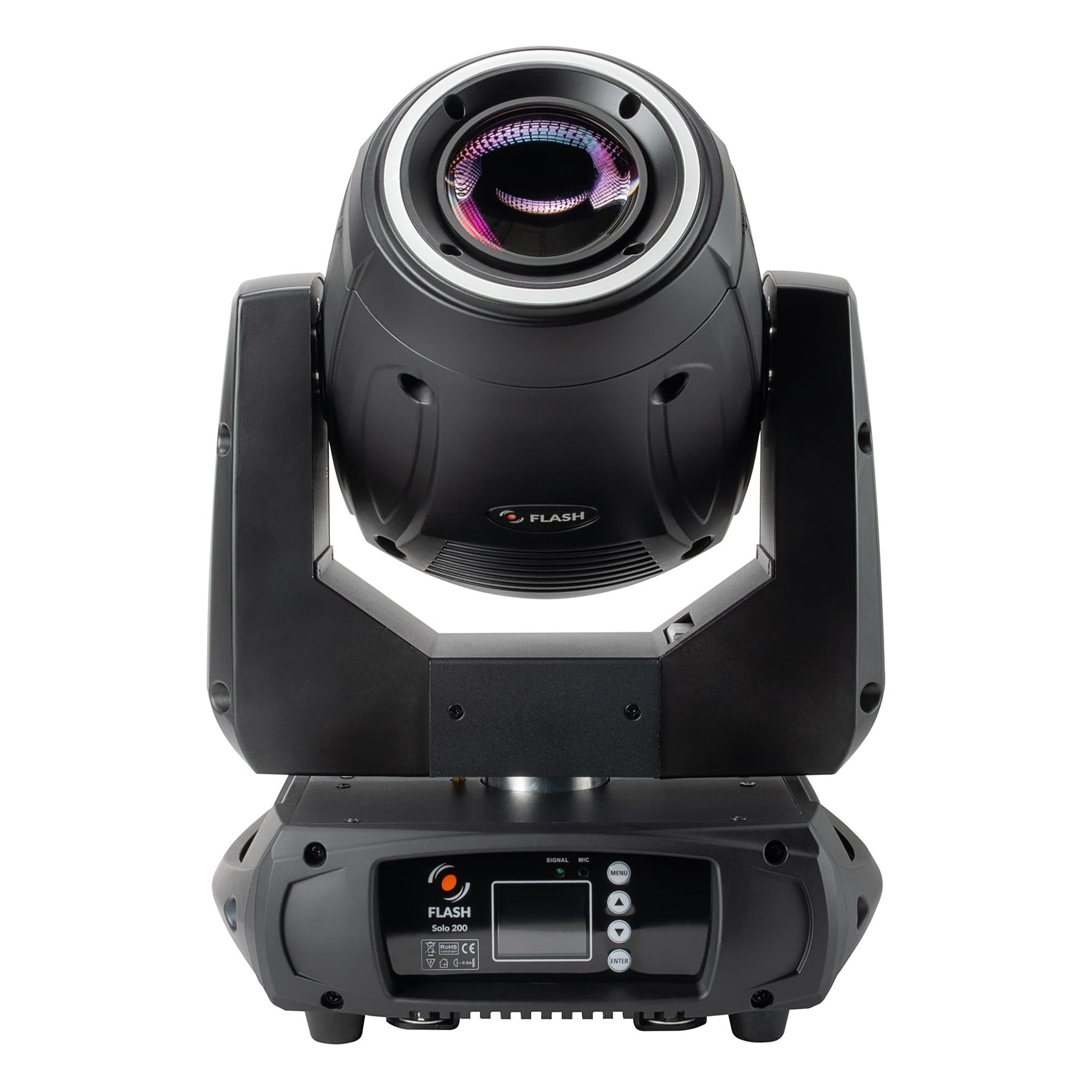Dzięki szerokim możliwościom sterowania (DMX, Auto, Sound, Master/Slave, RF, W-DMX, Auto Cycle Time) i kolorowemu wyświetlaczowi LCD, Flash MH-SOLO200 jest wszechstronnym narzędziem oświetleniowym dla profesjonalistów.