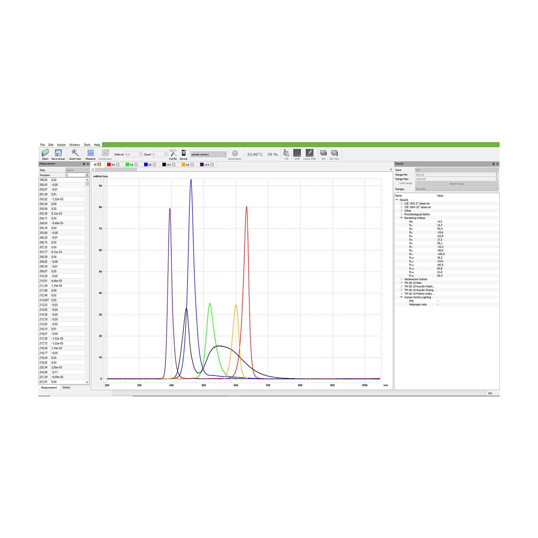 fabryczna kalibracja palety kolorów RGBWA+UV zapewnia identyczne barwy we wszystkich urządzeniach serii