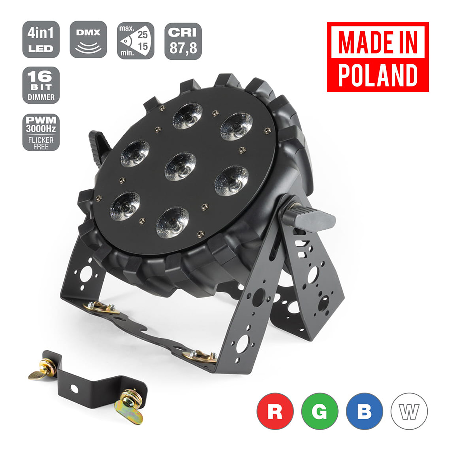 Flash Professional PAR SLIM P710 25° F-WDMX to profesjonalny reflektor PAR z siedmioma diodami o łącznej mocy 70W teraz w wersji z bezprzewodowym interfejsem DMX.