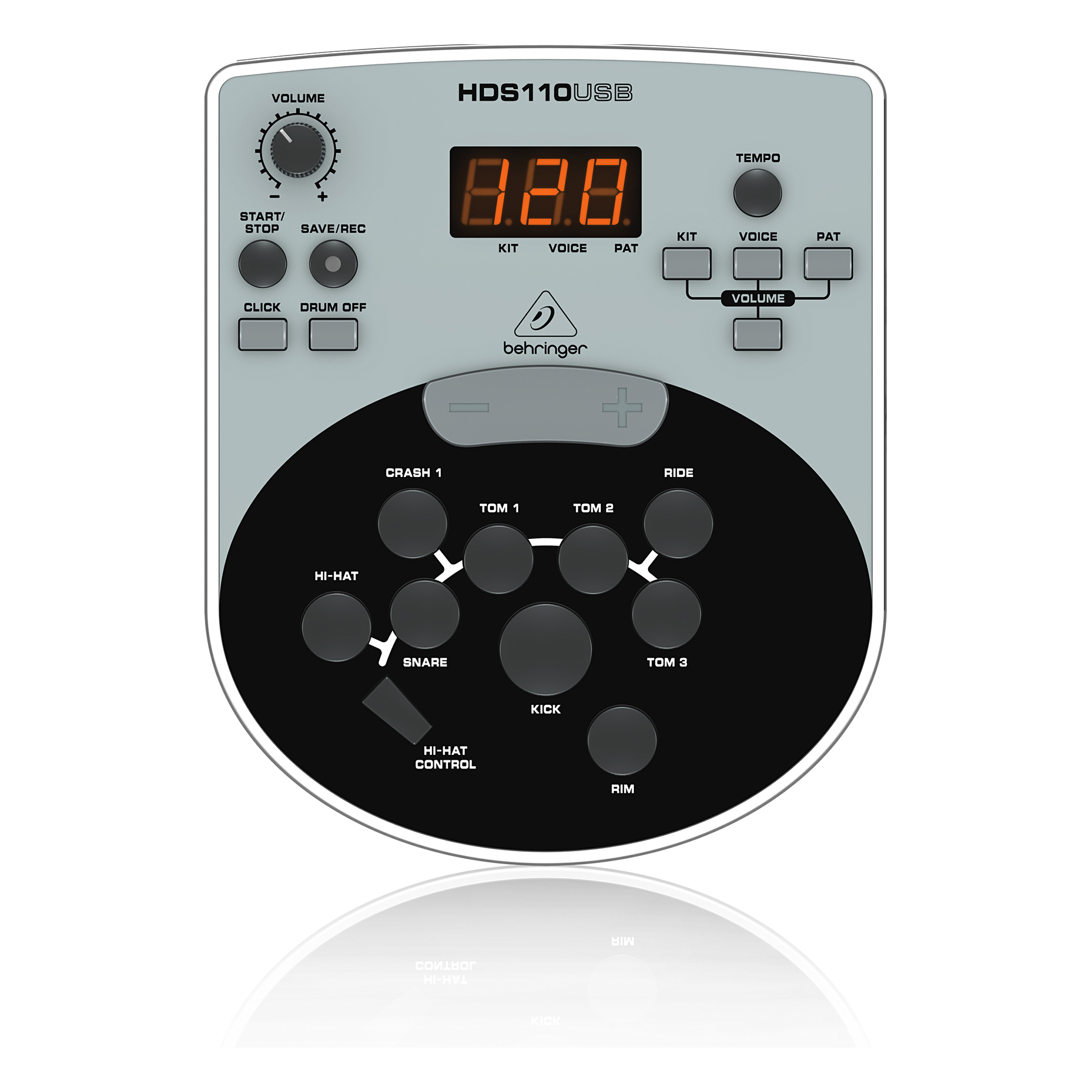 Behringer XD8USB to ośmioczęściowy elektroniczny zestaw perkusyjny wyposażony w pedał kick oraz hihat, 8″ pad werblowy, trzy 8″ pady do tomów, trzy talerze, moduł brzmieniowy, statyw, pałeczki perkusyjne oraz kable breakout. 123 brzmienia bębnów, talerzy i perkusji.